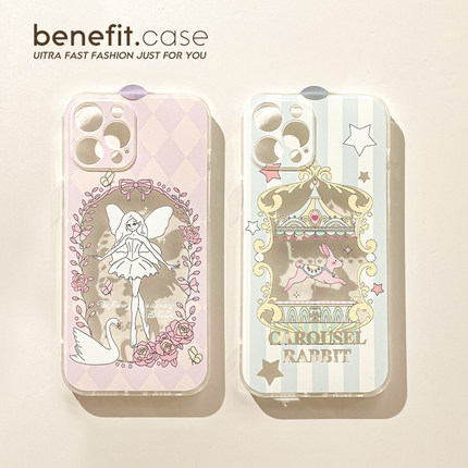 benefit少女心梦幻旋转兔子17pro16适用15苹果13手机壳iphone14promax新款12套11卡通xsmax硅胶xr全包8p7p防