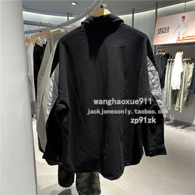 杰克琼斯 秋男士潮流反光条纯棉磨毛厚oversized宽松衬衫上衣外套