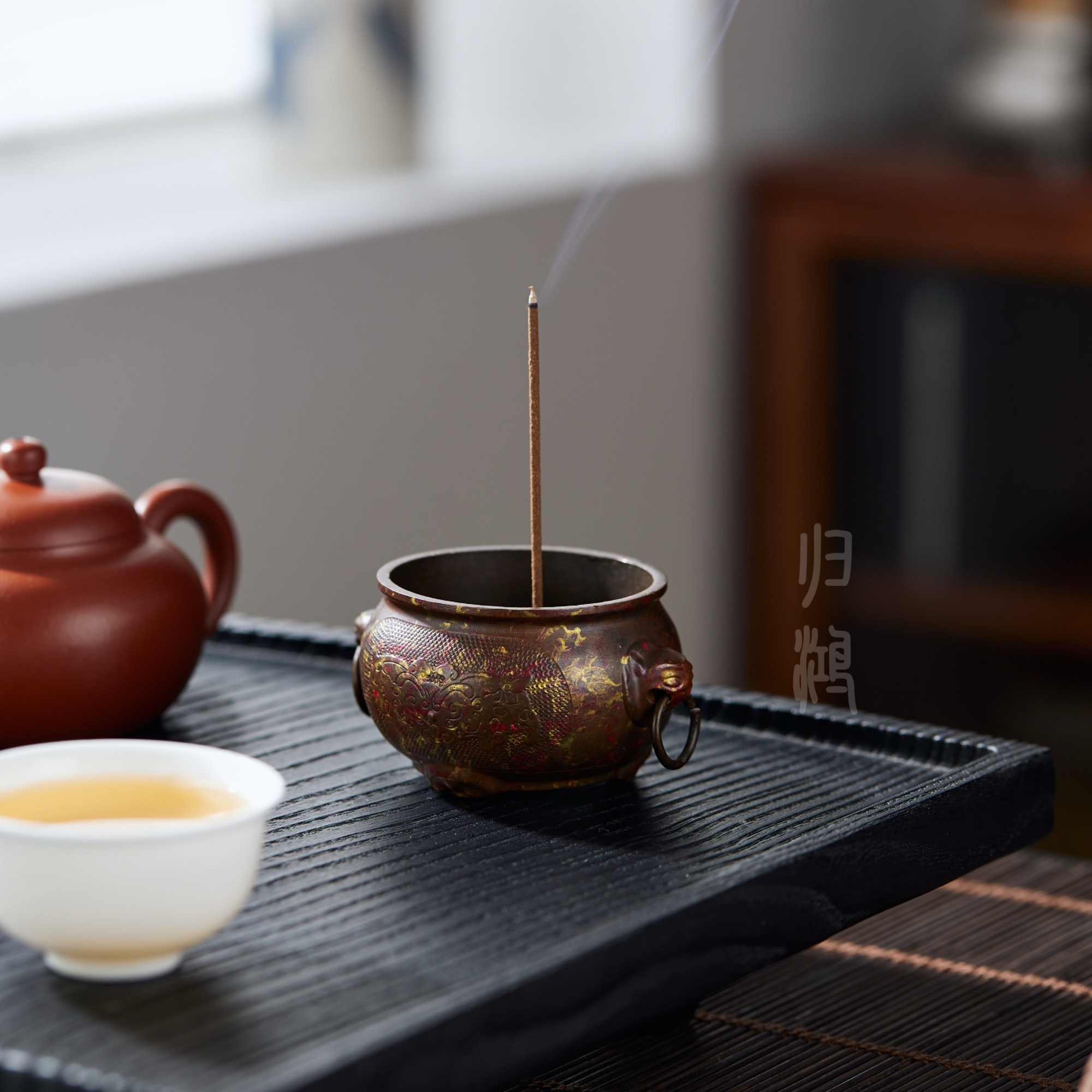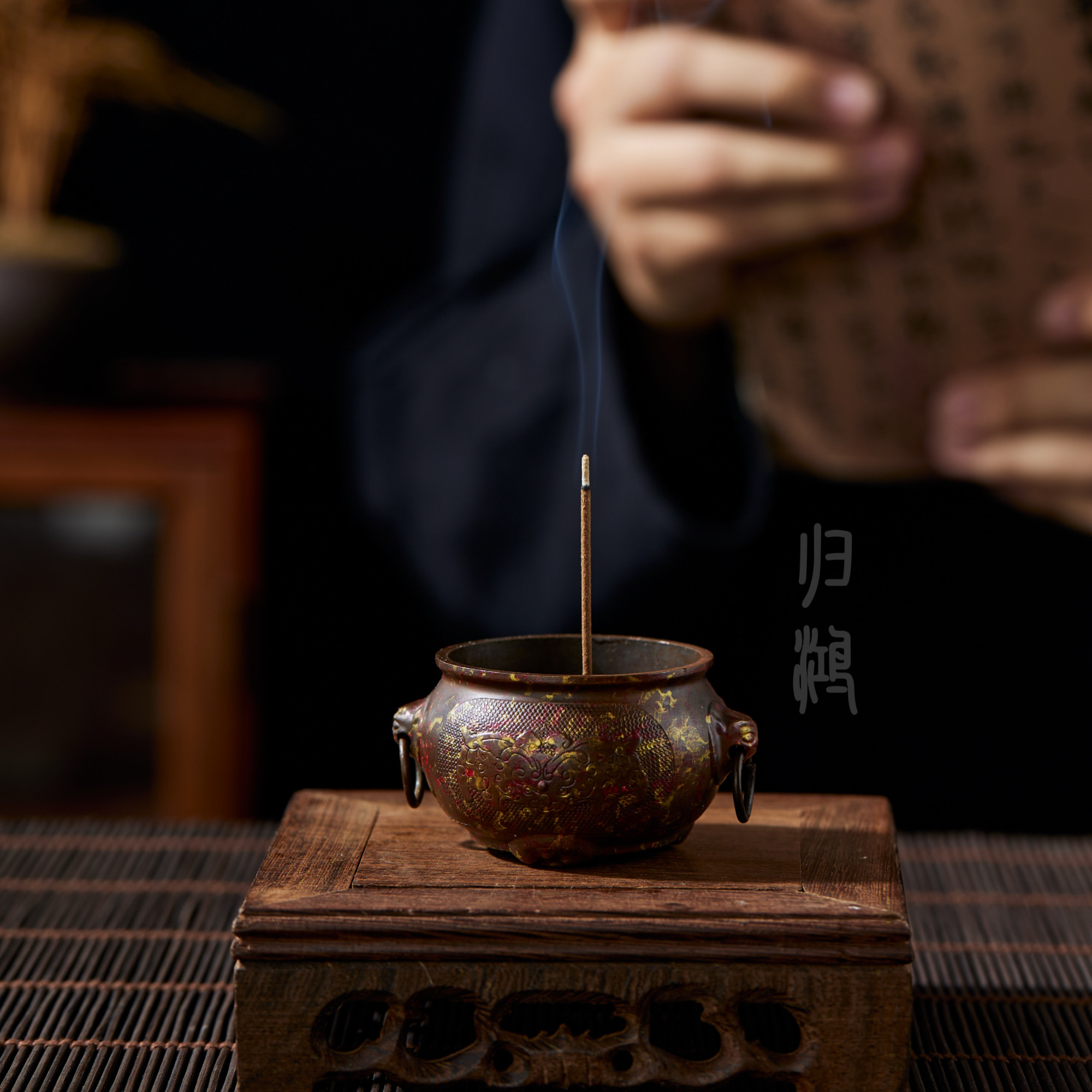 归鸿 铜创意双耳小鼎小香炉线香香插迷你家用空间装饰香道小摆件
