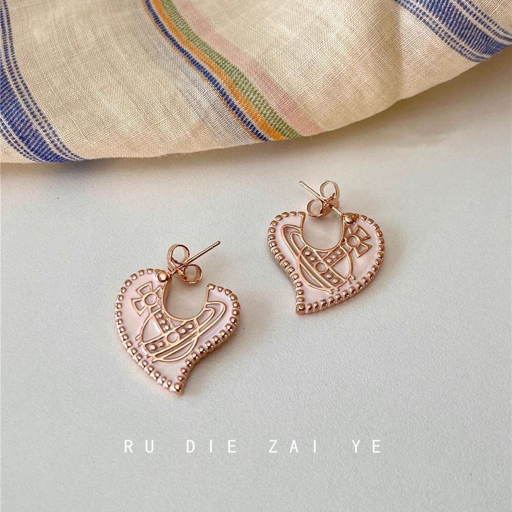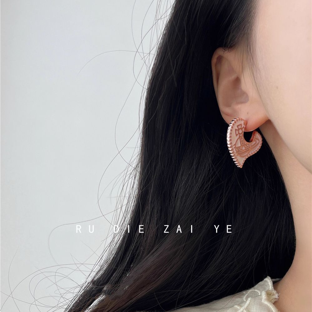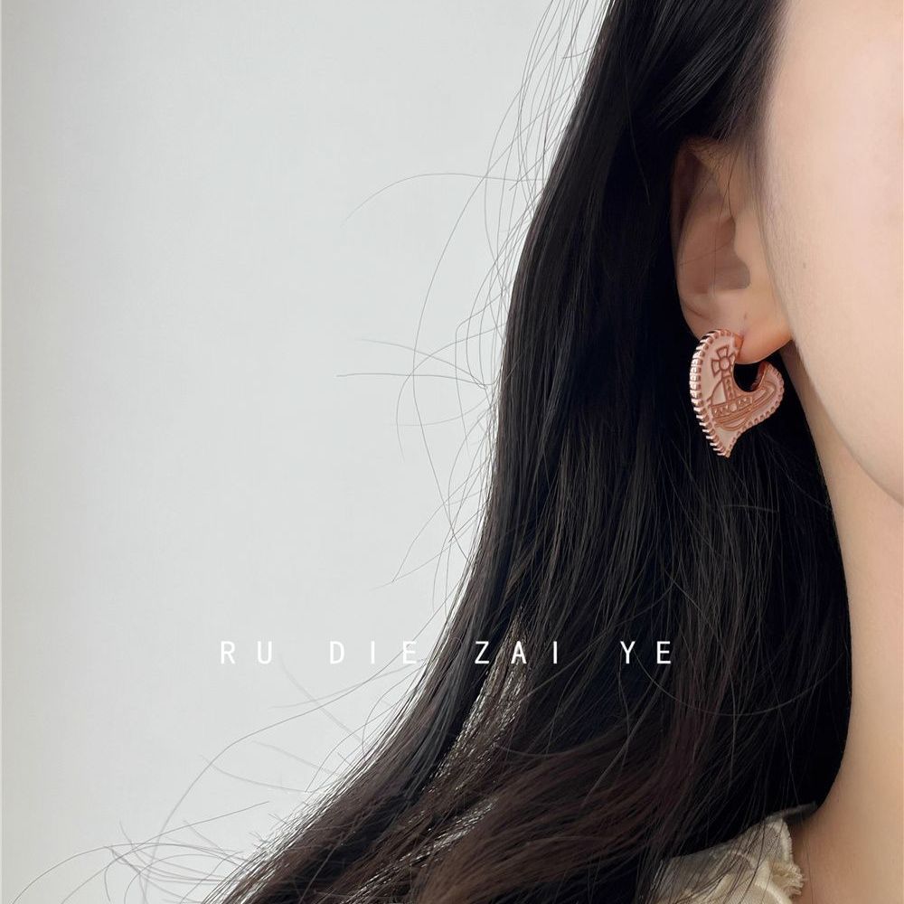 如蝶在野 小众复古Vintage土星爱心耳钉轻奢高级感时尚爱心耳环