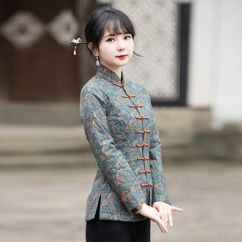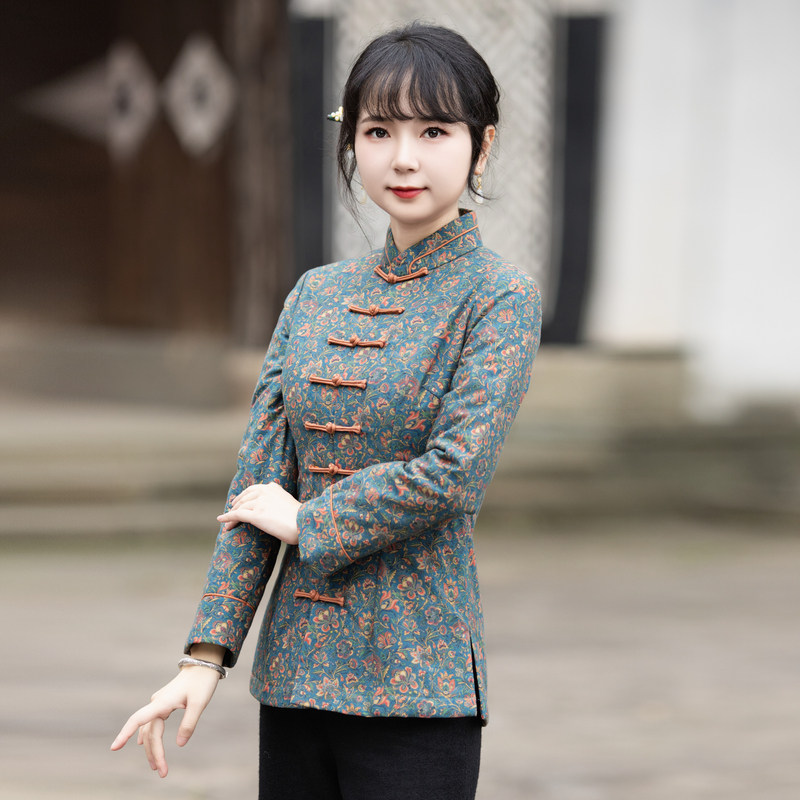 筠雅民族风复古改良唐装盘扣旗袍上衣冬季新款保暖中式女装23J689
