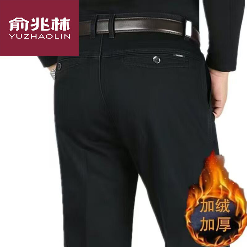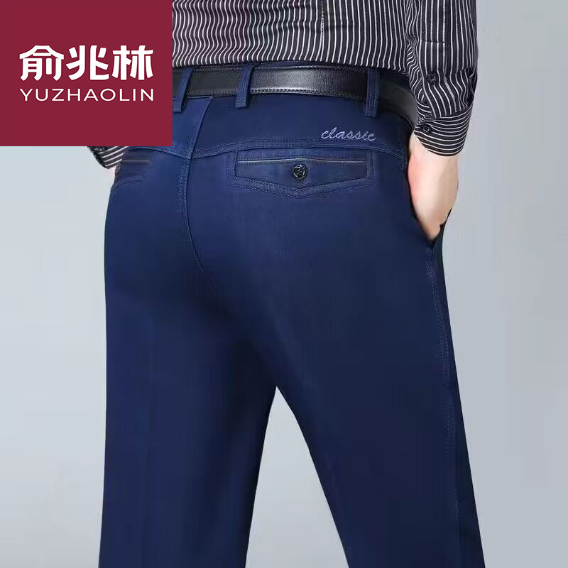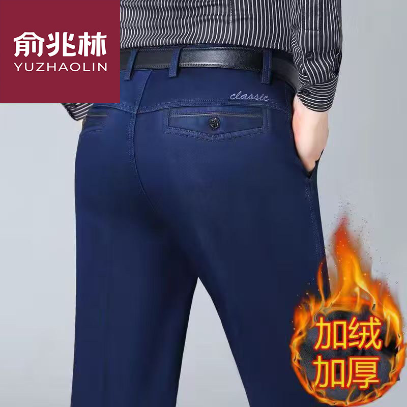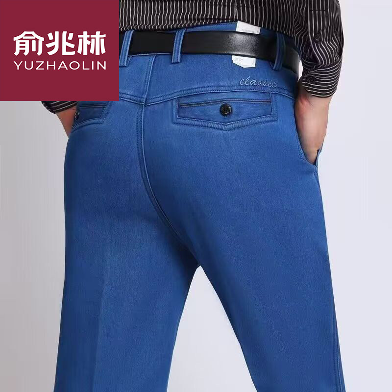 正品俞兆林中老年高腰弹力宽松加绒加厚牛仔裤男秋冬厚款休闲裤男