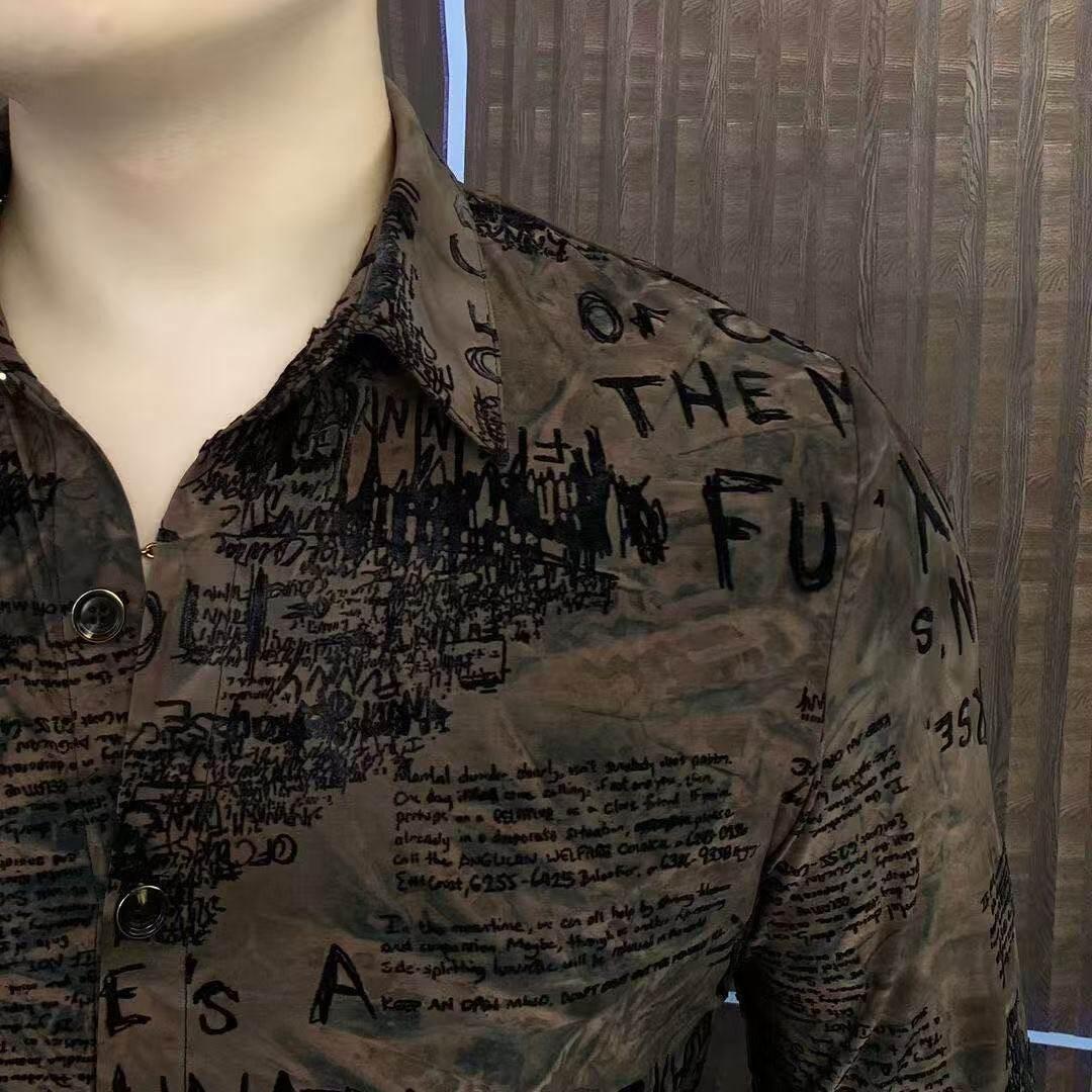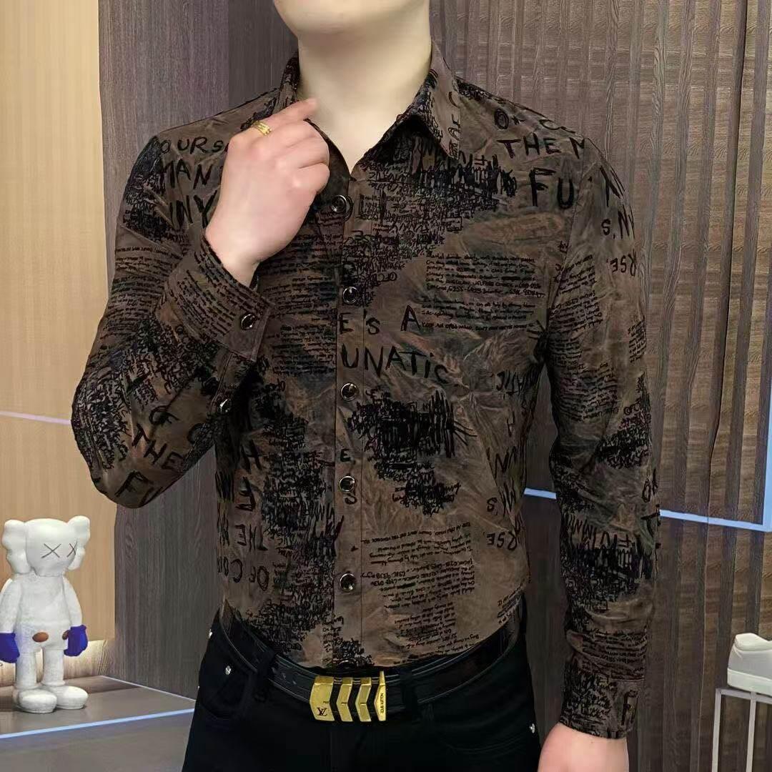 2025春秋衬衫长袖衬衣男士时尚休闲潮流修身印花植绒个性韩版痞帅