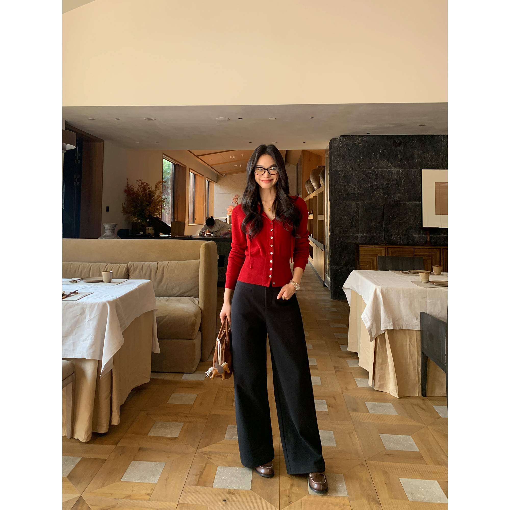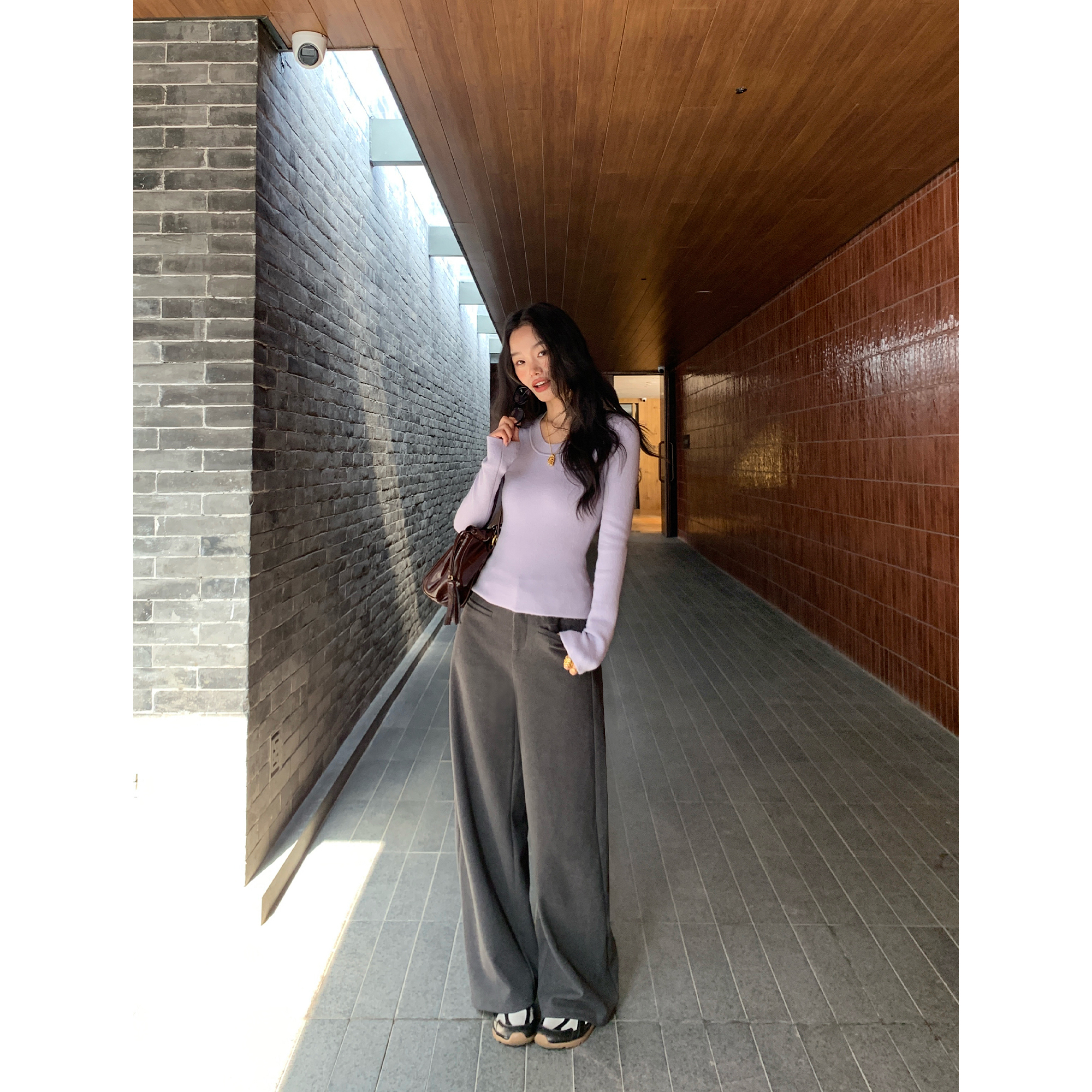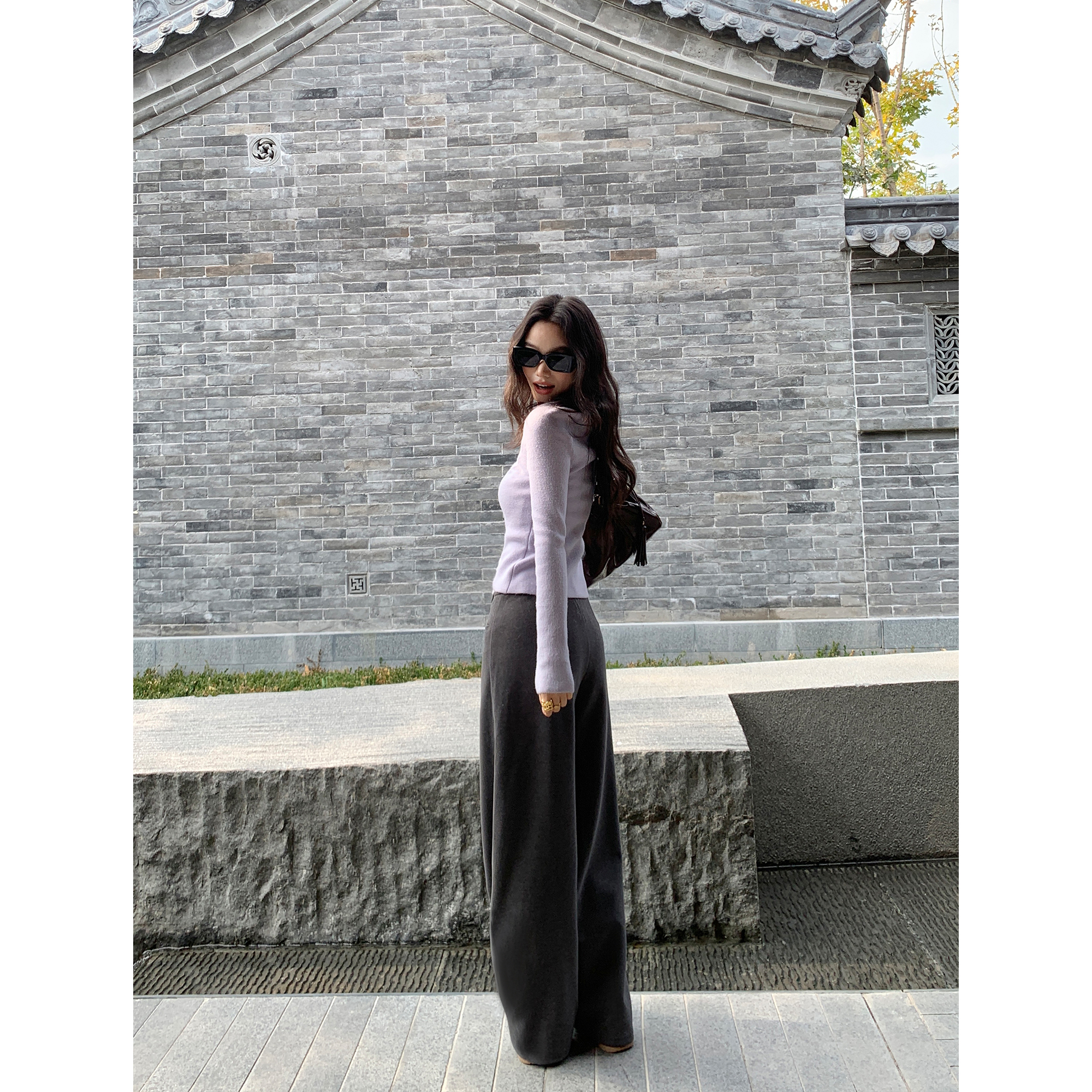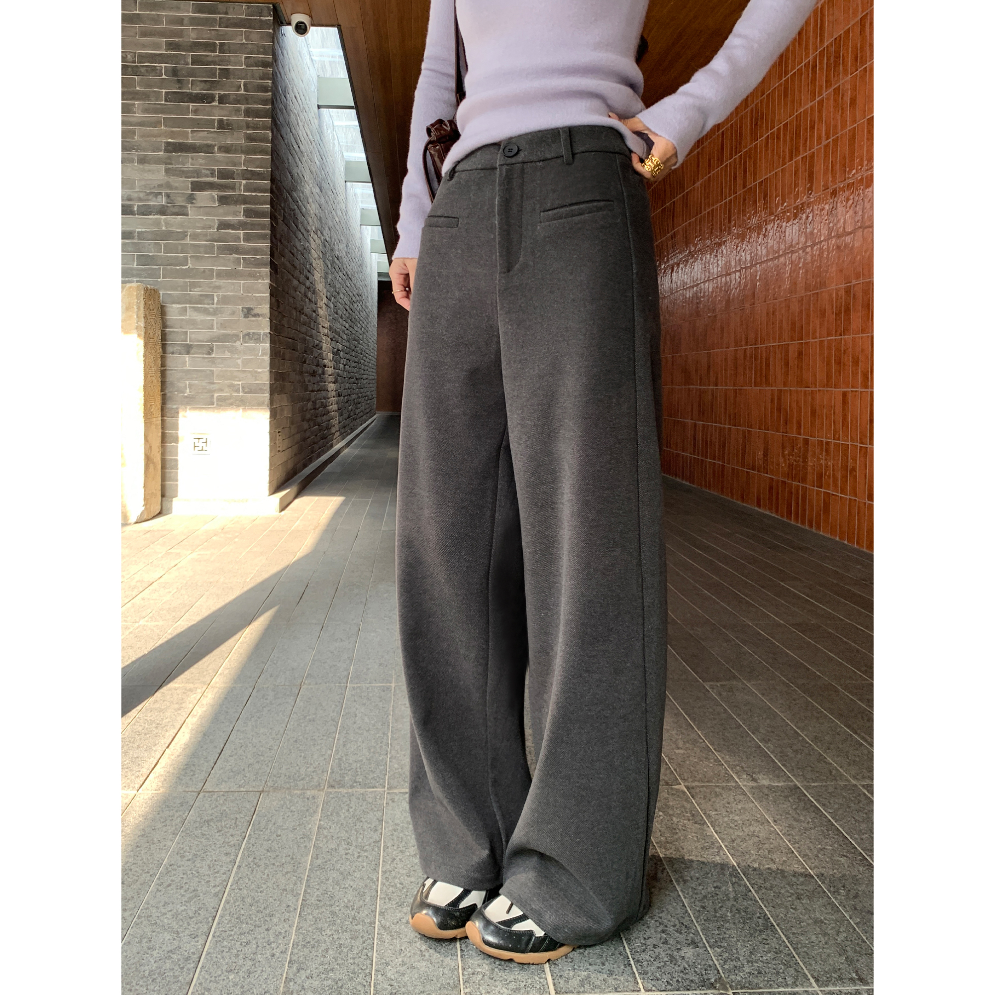pusumede 无拘自我 宽松毛呢弯刀休闲裤女松弛感阔腿直筒香蕉裤