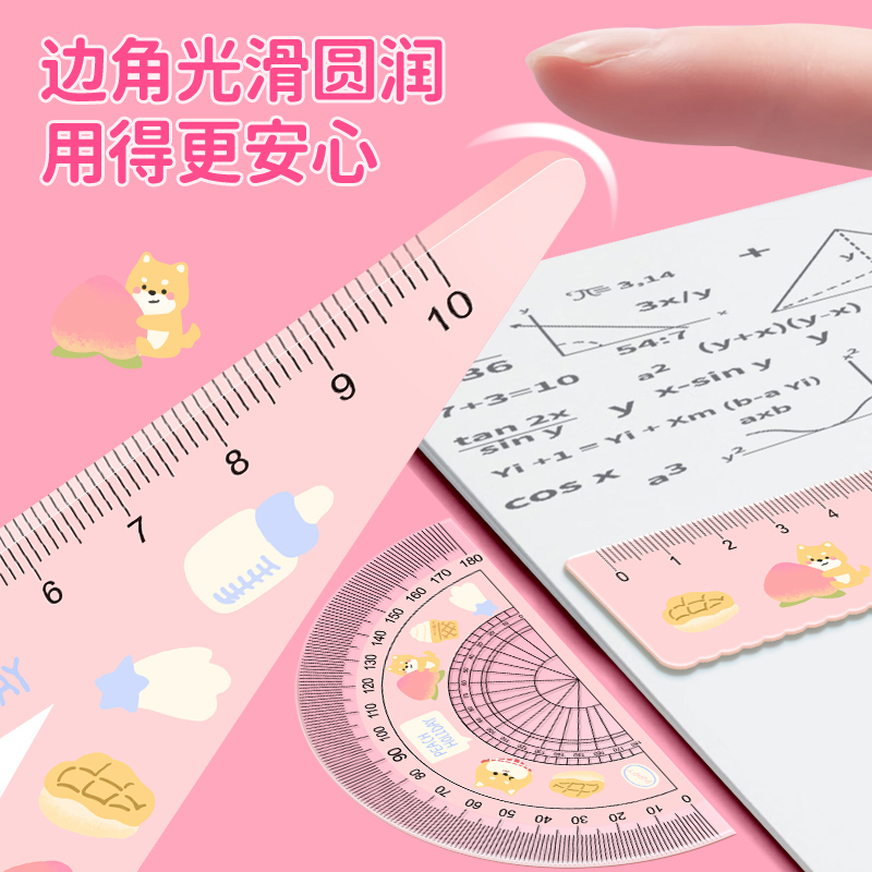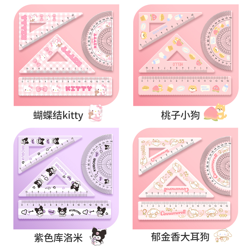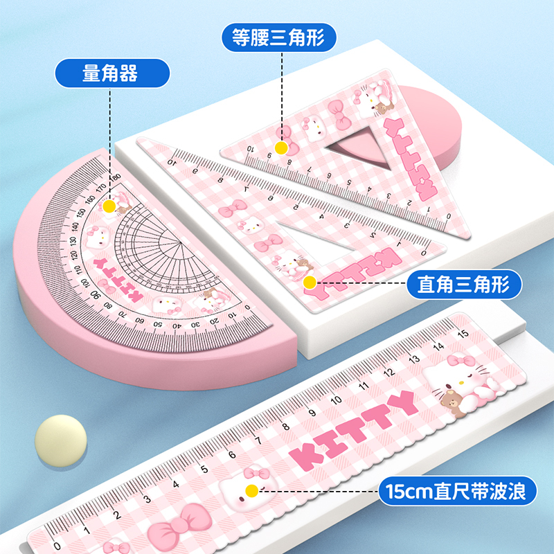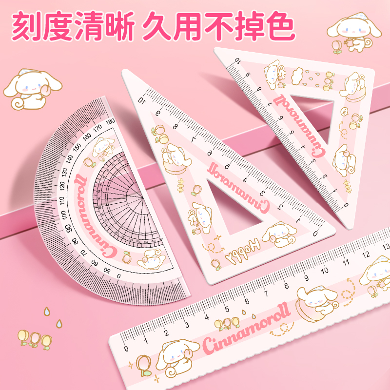 尺子小学生专用直尺三角板套装量角器高颜值可爱卡通波浪四件套亚克力15cm初中生一年级儿童库洛米文具幼儿园