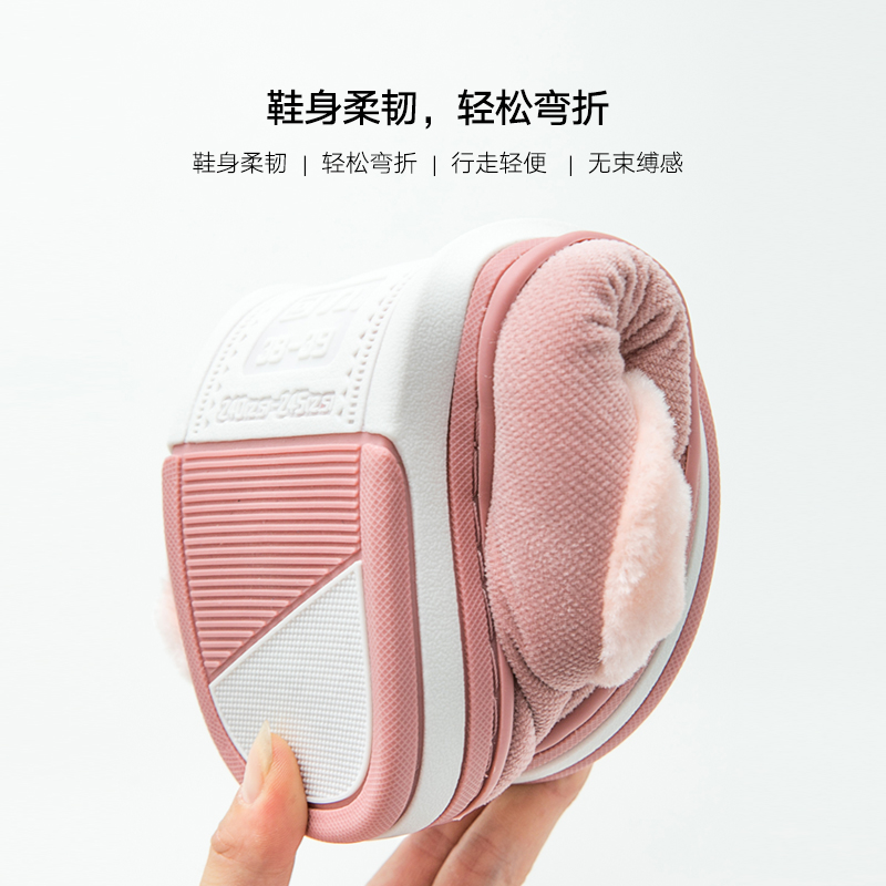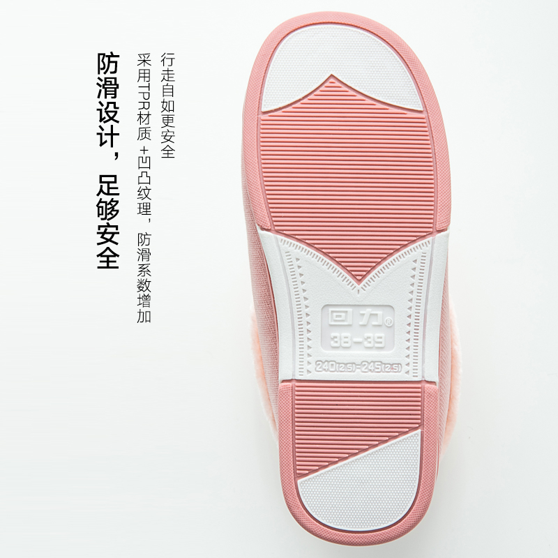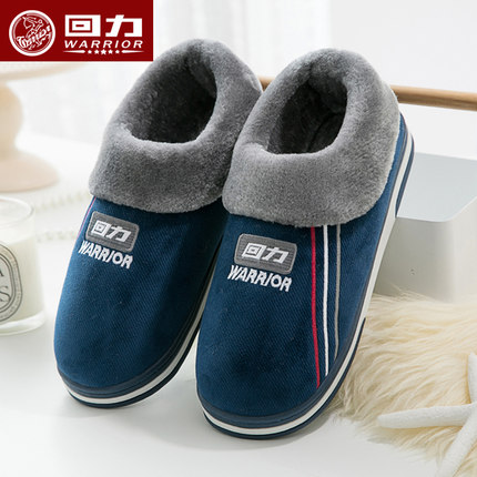 回力厚底保暖棉鞋男士棉拖鞋女秋冬季室内防滑情侣全包跟毛拖鞋男