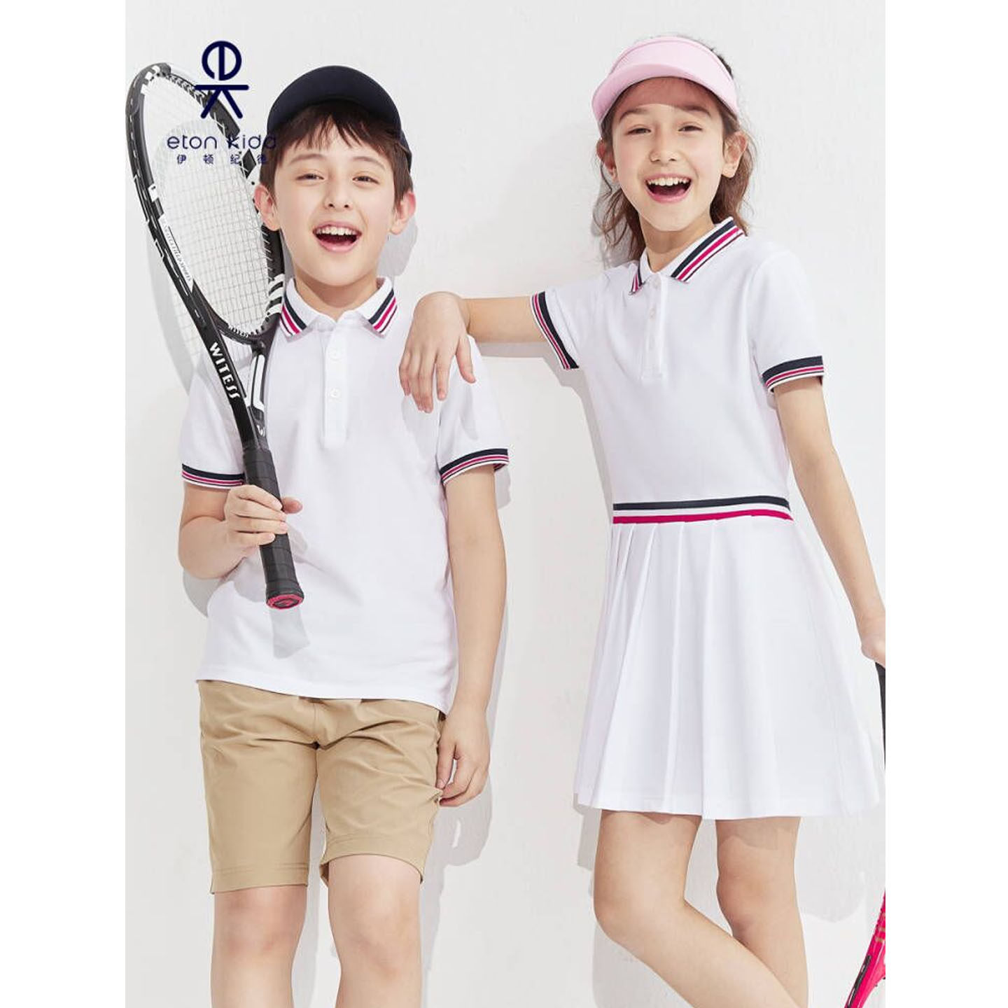 伊顿纪德男女童短袖POLO衫珠地网眼条纹撞色领学生半袖T恤22T901