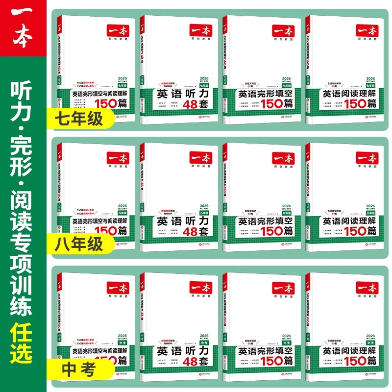 2026新一本英语完形填空与阅读理解英语听力七八九年级阅读理解完形填空一本旗舰店小学升初中英语阅读中考英语专项训练中学教辅书