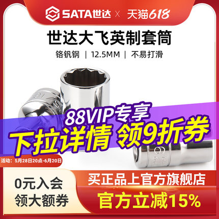 世达英制大飞套筒1/2六角套筒头12.5mm棘轮快速扳手6角套管头工具