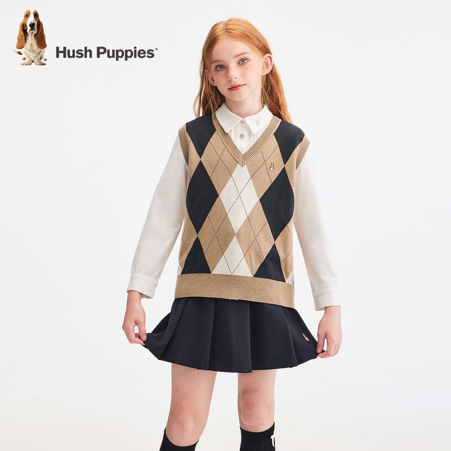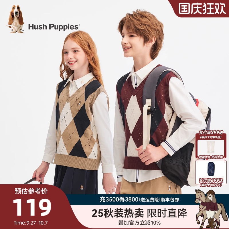暇步士童装儿童马甲25秋新品男童V领学院风女童针织背心宝宝马夹