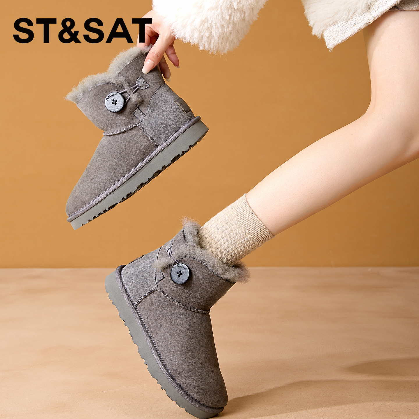 星期六羊皮毛一体雪地靴保暖升级