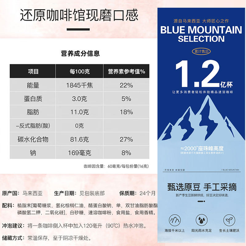 【进口】零涩LIMS蓝山风味三合一速溶咖啡粉16g*80条共2袋
