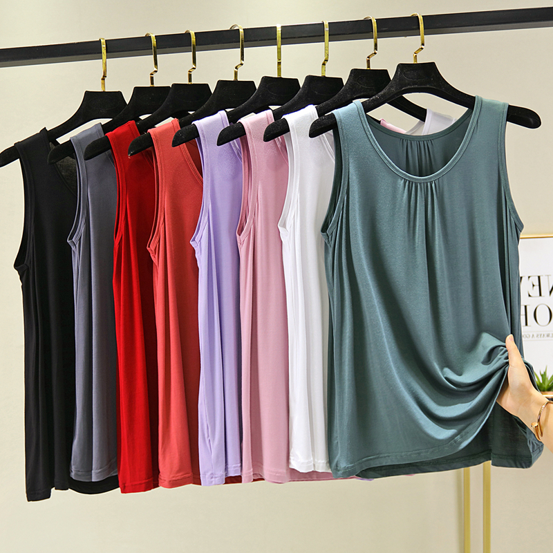 外穿宽松莫代尔背心女夏季薄款大码睡衣打底衫加肥家居上衣显瘦