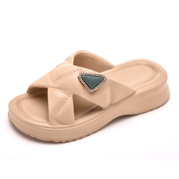 厚底凉拖女2025年夏季新款休闲沙滩鞋方扣水钻双带一字拖外穿拖鞋