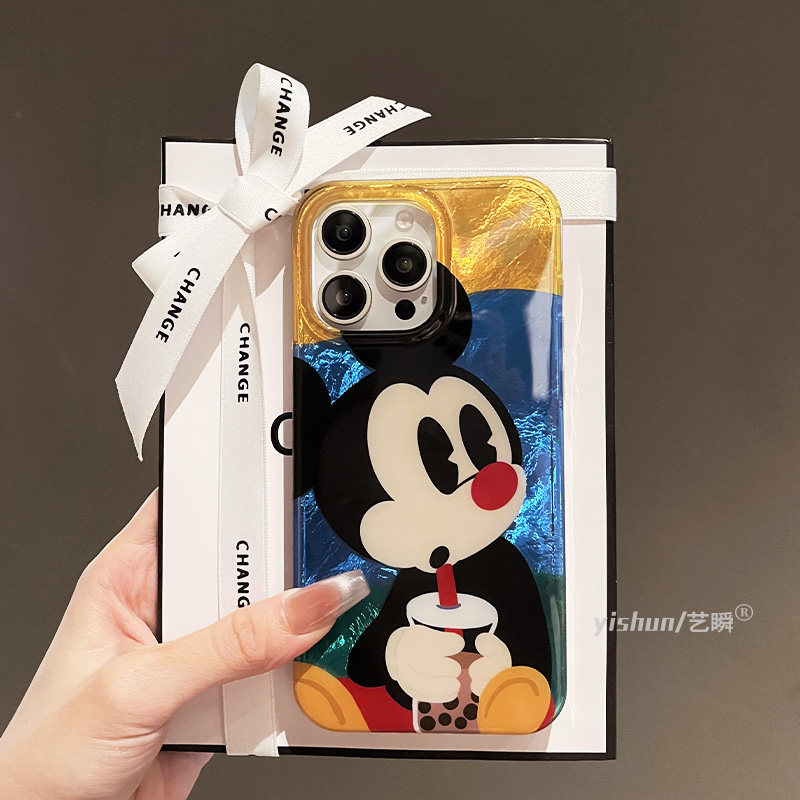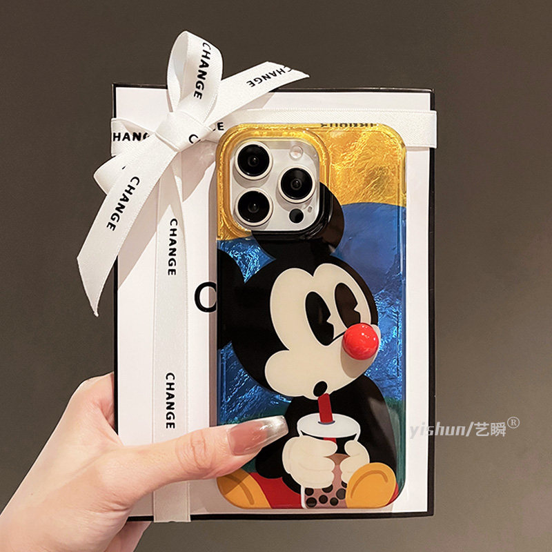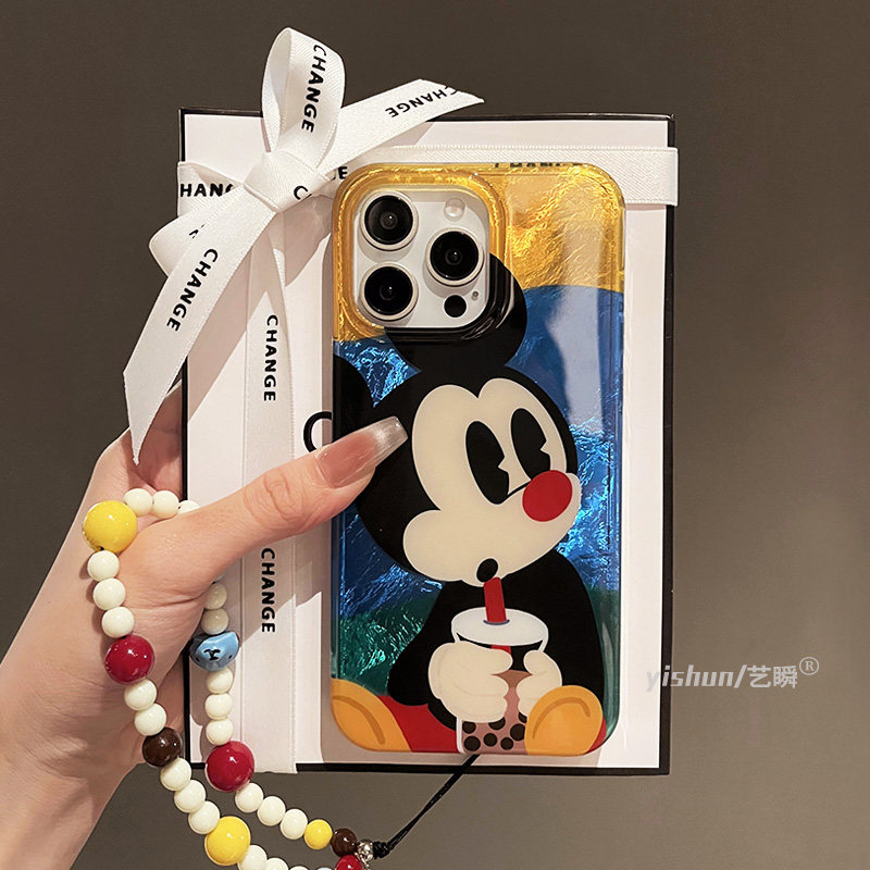 适用苹果16ProMax手机壳iPhone15小众可爱卡通奶茶米奇14超火爆款女13promax带手链12迪士尼新款pm硅胶保护套