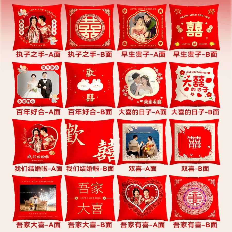结婚抱枕定制一对diy照片婚房装饰红喜字沙发靠垫高级感新婚礼物