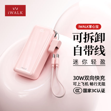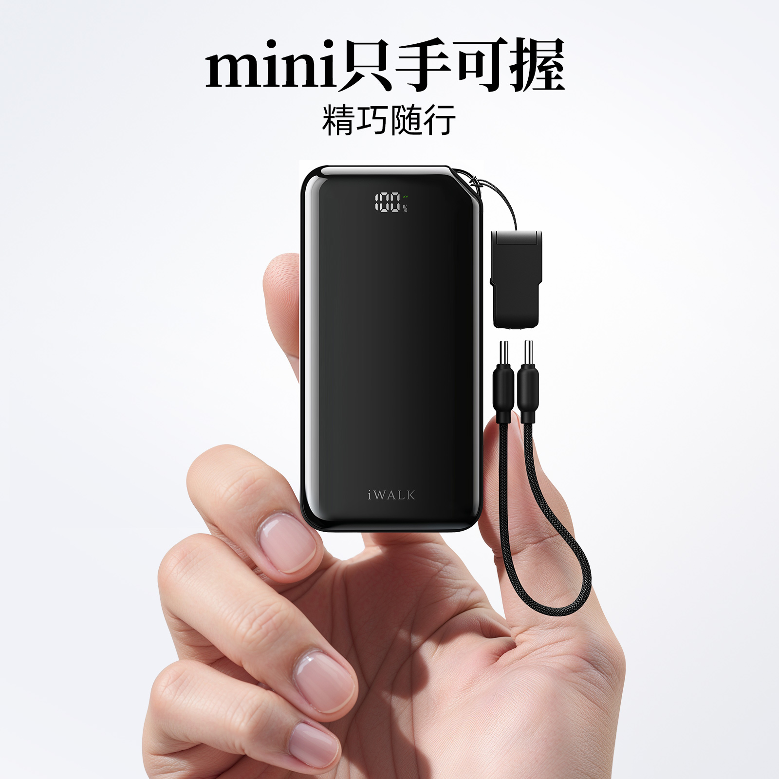 iWALK爱沃可掌心宝3c认证支自带线支架充电宝10000毫安30W快充迷你小巧便携2025新款移动电源适用华为苹果17