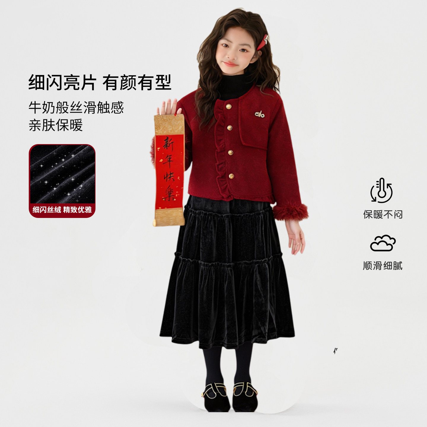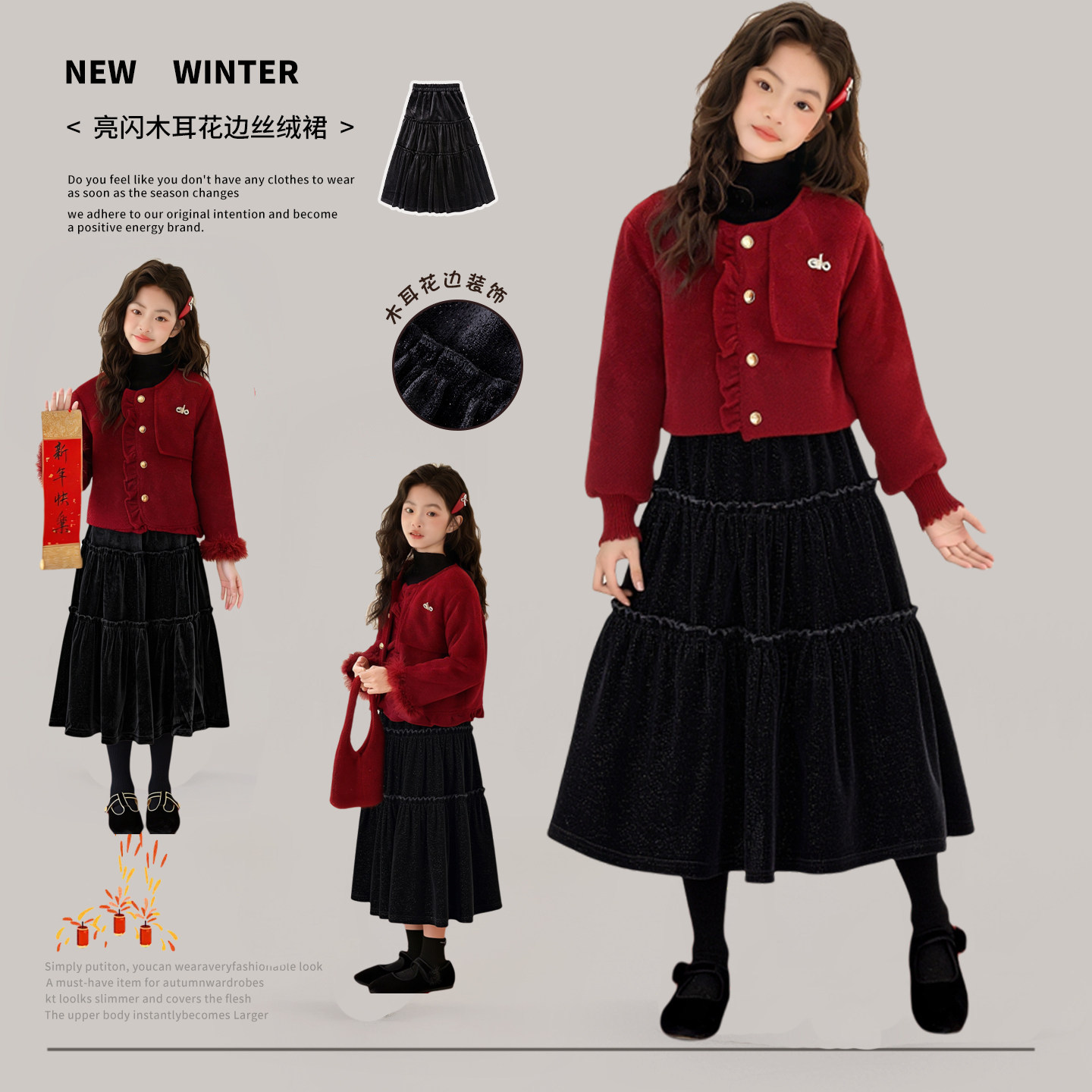 女童长款半身裙冬装2025新款儿童巨好看丝绒蛋糕裙子大童冬季黑色