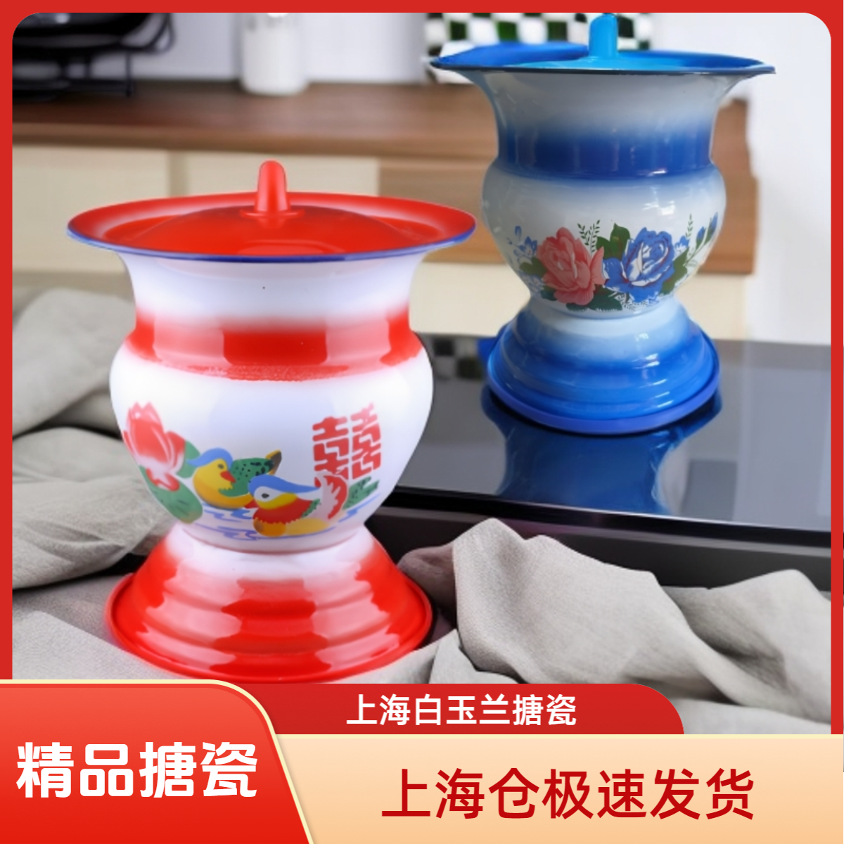 痰盂家用卧室带盖坐便器老人搪瓷高脚尿桶成人孕妇老年人移动马桶