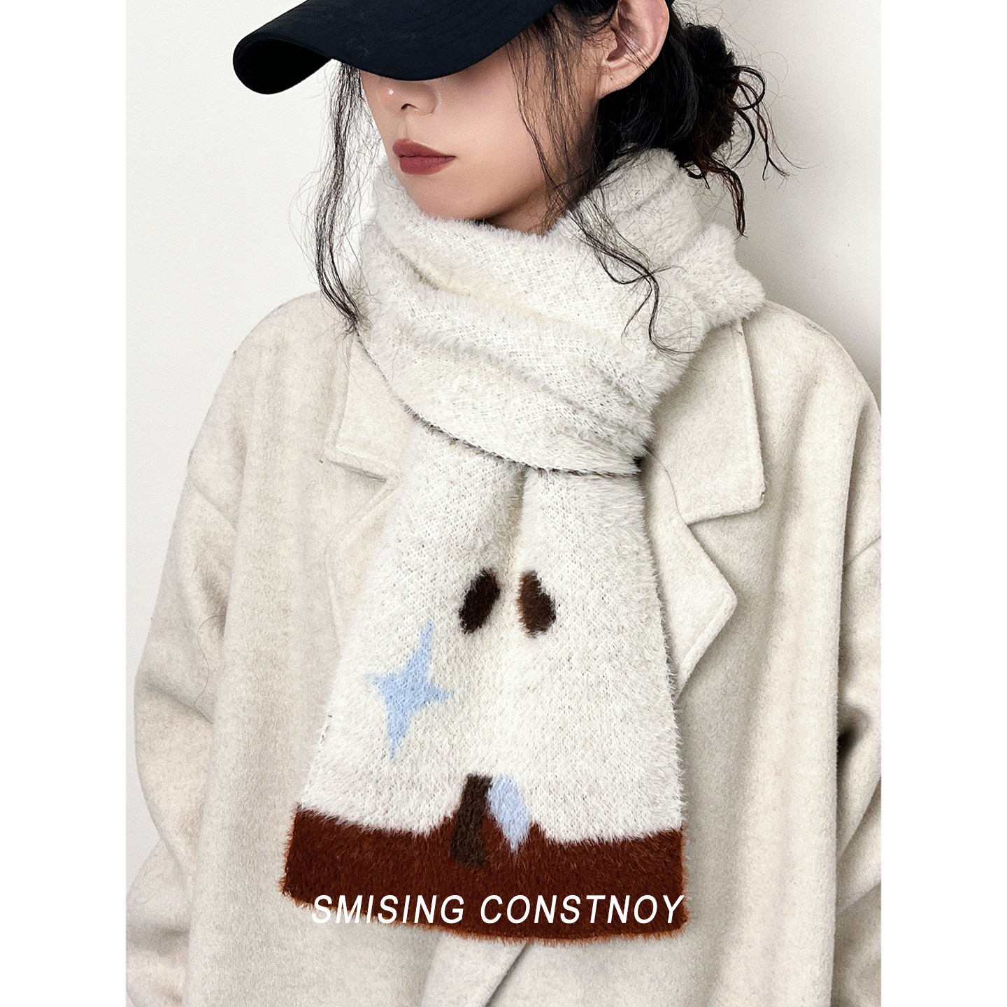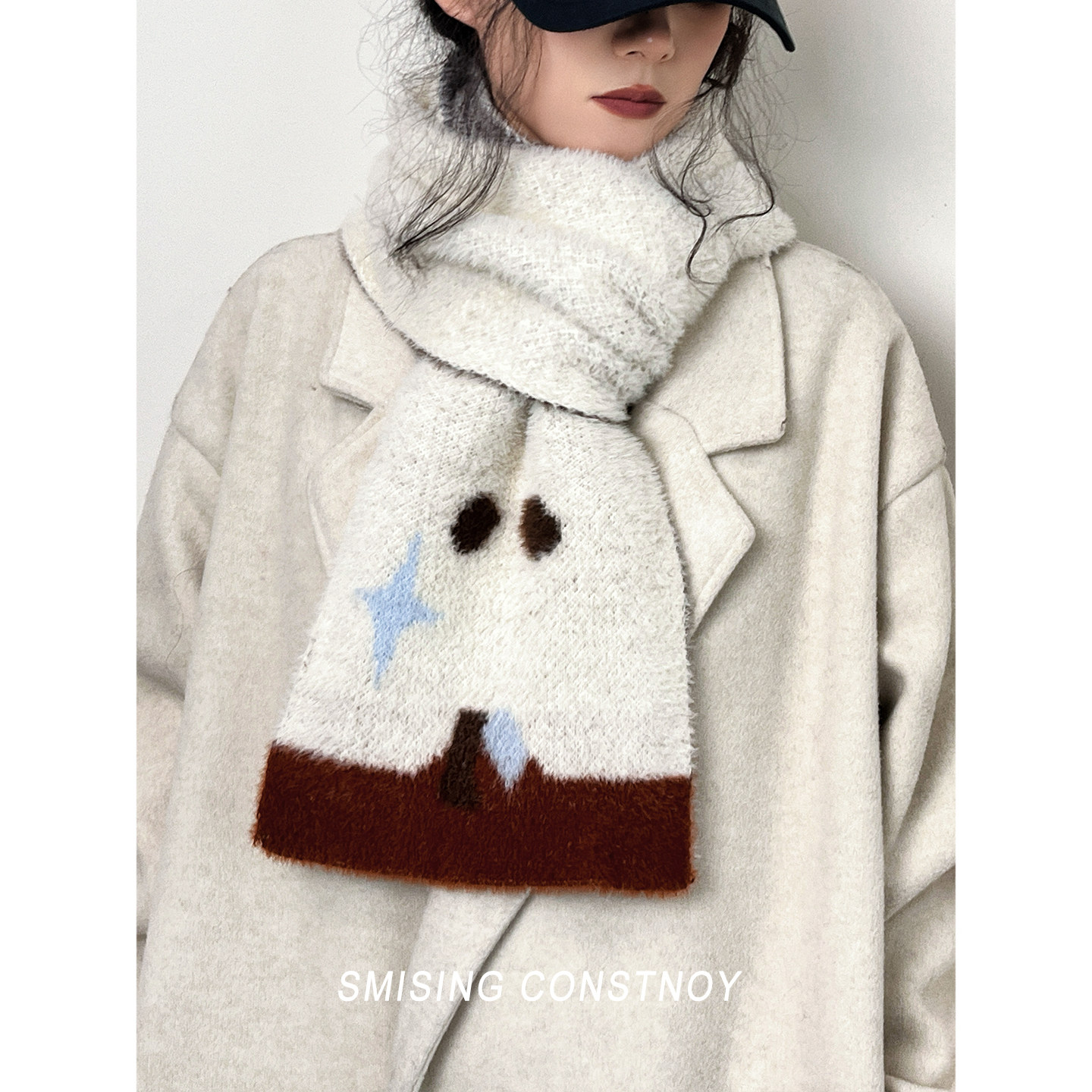 可爱卡通苹果仿貂绒围巾女秋冬加厚保暖护颈防风围脖学生百搭披肩