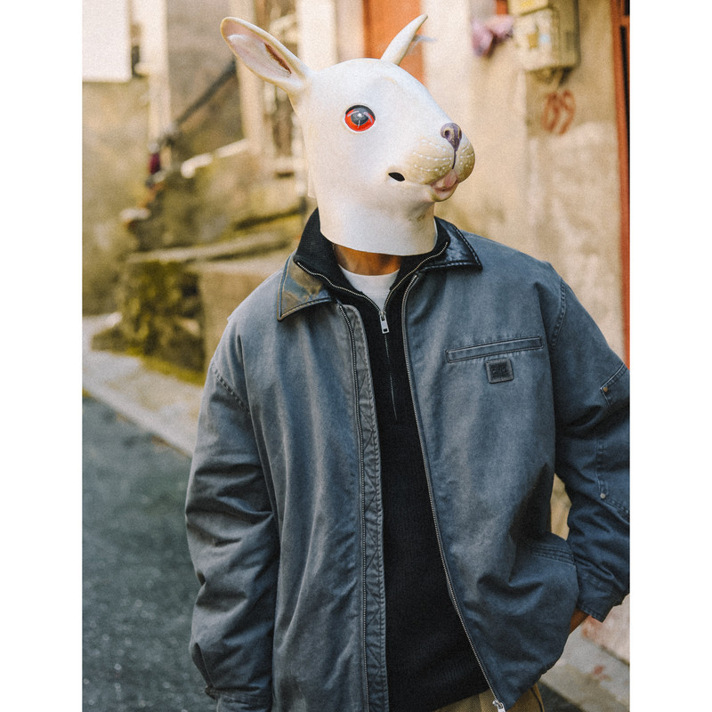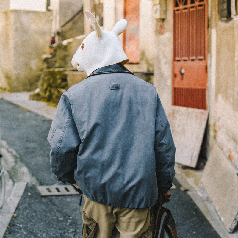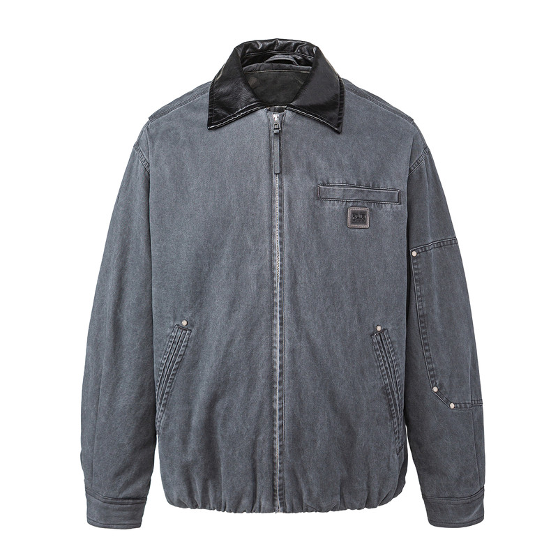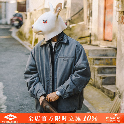 兔先森冬季复古重工水洗白鸭绒工装羽绒服男士皮翻领短款加厚外套