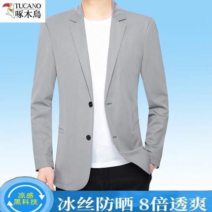 啄木鸟西服外套男中年防晒衣夏季免烫薄款速干休闲西装上衣防晒服