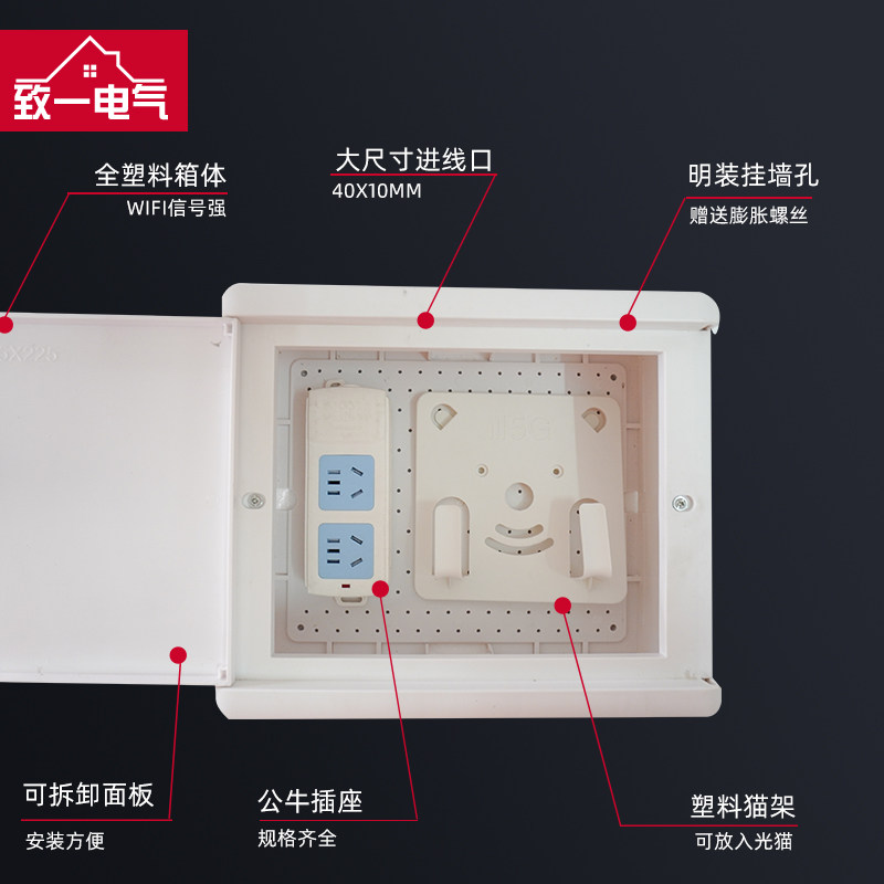 媒体箱集线箱明装全塑料弱电箱塑E胶小号网路布线箱多家用壁挂式