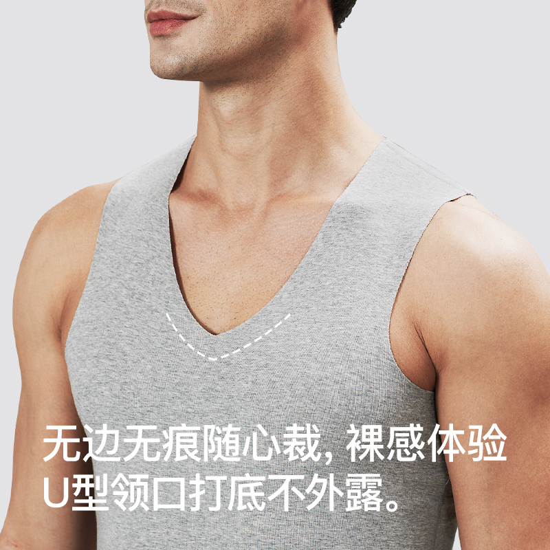 健丹鸟莫代尔无痕男士背心无袖冰丝运动薄款跨栏打底内穿白色汗衫