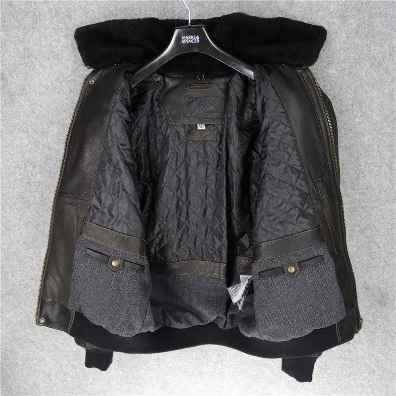空军飞行服皮夹克山羊皮真皮皮衣机车服男士加棉可拆卸羊羔毛领