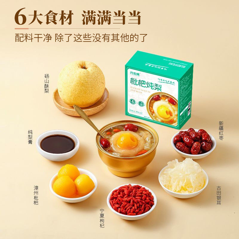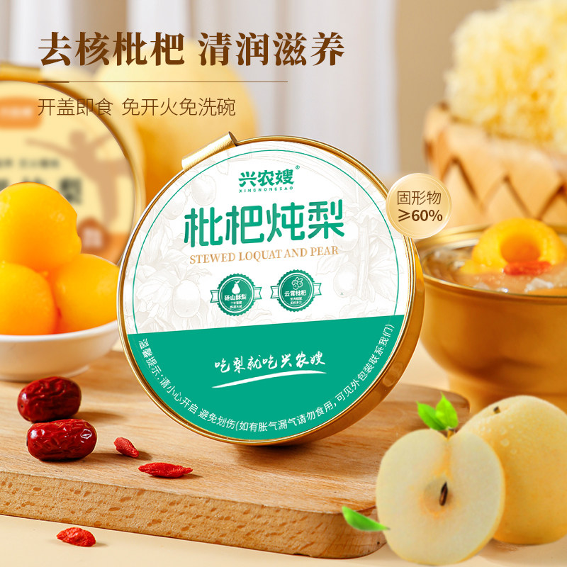 兴农嫂枇杷炖梨冰糖雪梨小碗速食水果罐头开盖即食免炖煮银耳羹