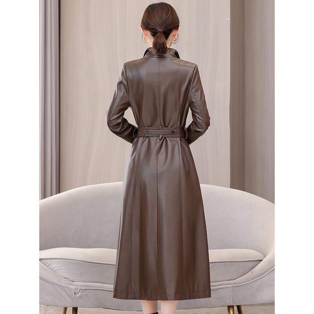 真皮皮衣女中长款过膝绵羊皮风衣秋冬新款收腰皮大衣显瘦大码外套