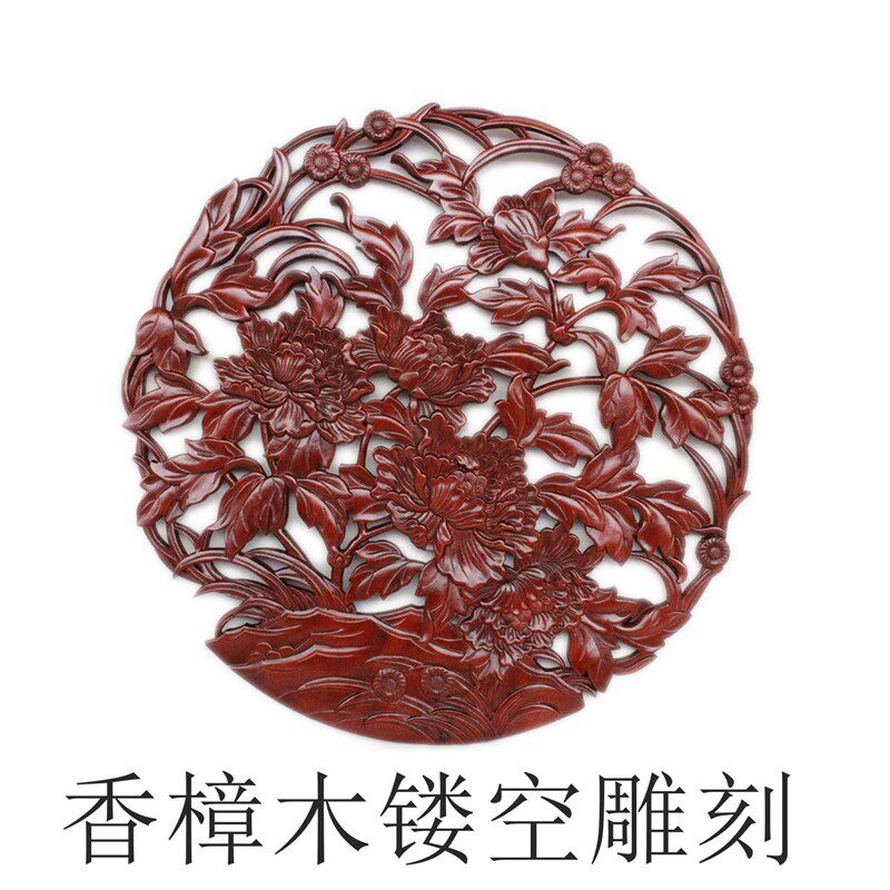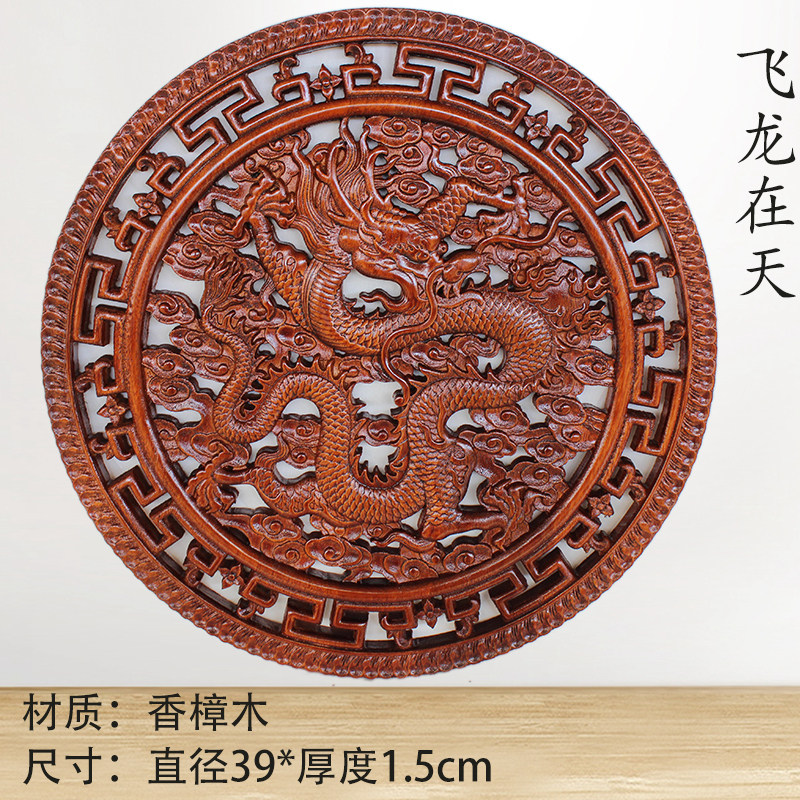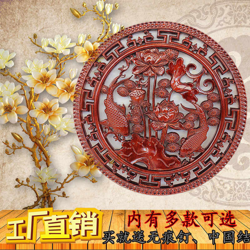 东阳木雕花格中式仿古挂件装饰画镂空雕刻圆形福字客厅实木壁饰