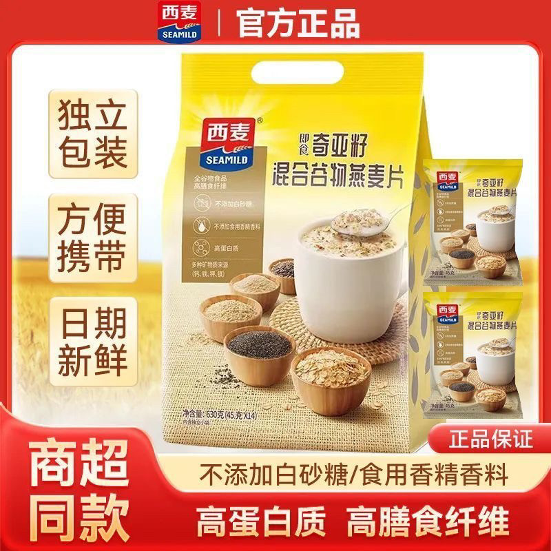 西麦奇亚籽混合谷物燕麦片630g早餐独立包装高蛋白即食0添加蔗糖