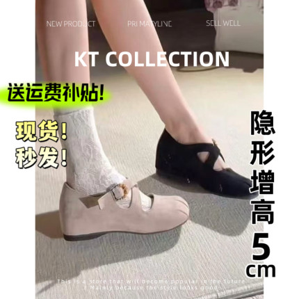羊皮版!内增高5cm~复古风圆头平底玛丽珍鞋女百搭休闲鞋