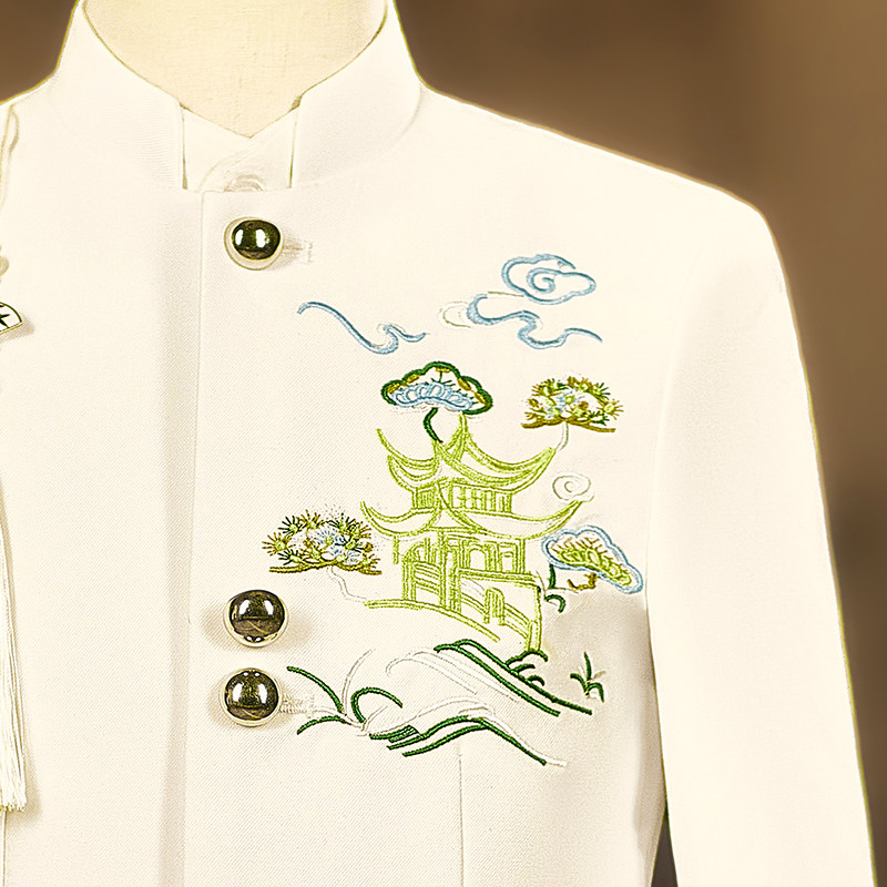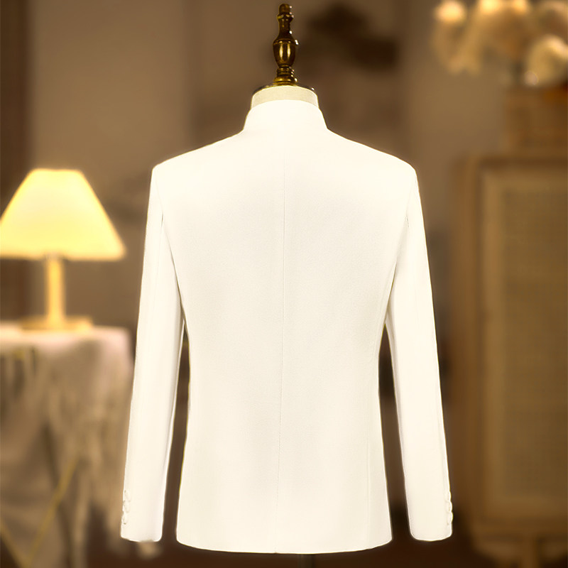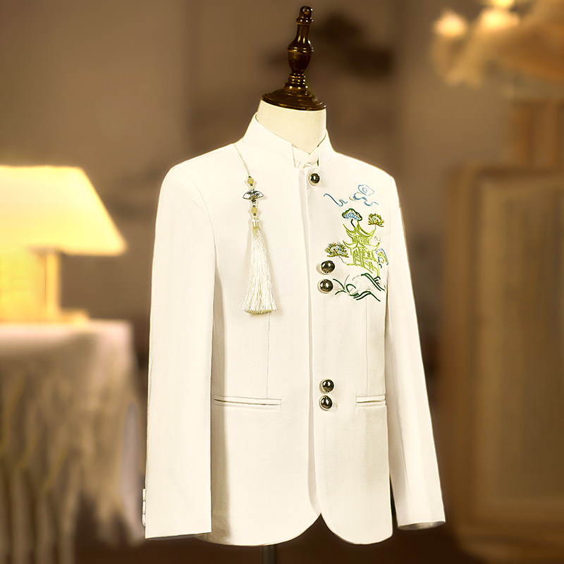 儿童礼服西装新中式立领男童白色刺绣中山装青少年演出服高级国潮