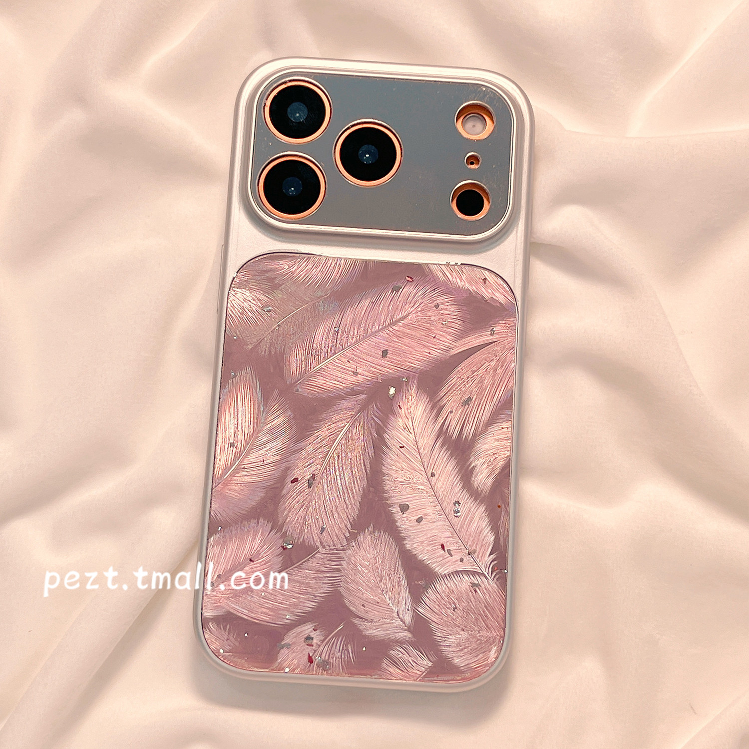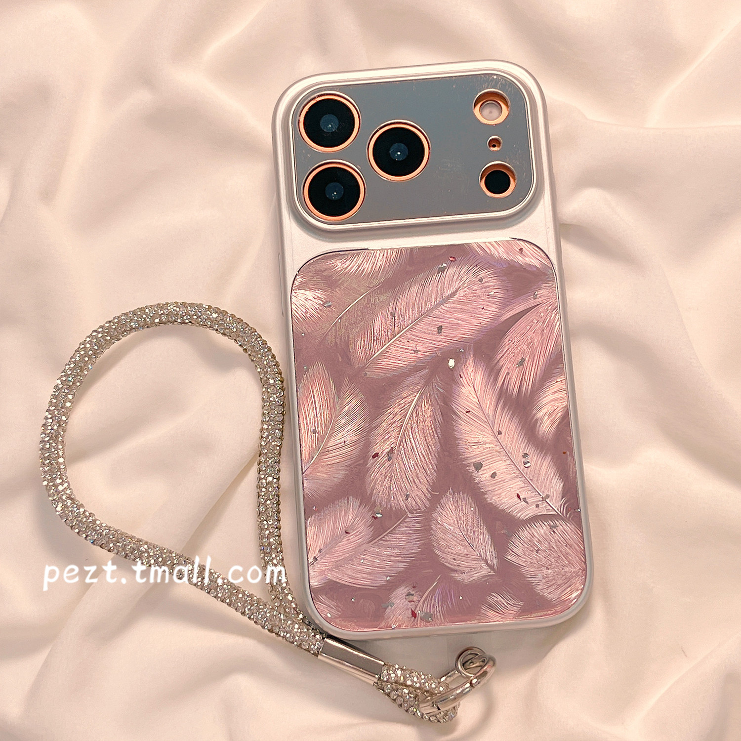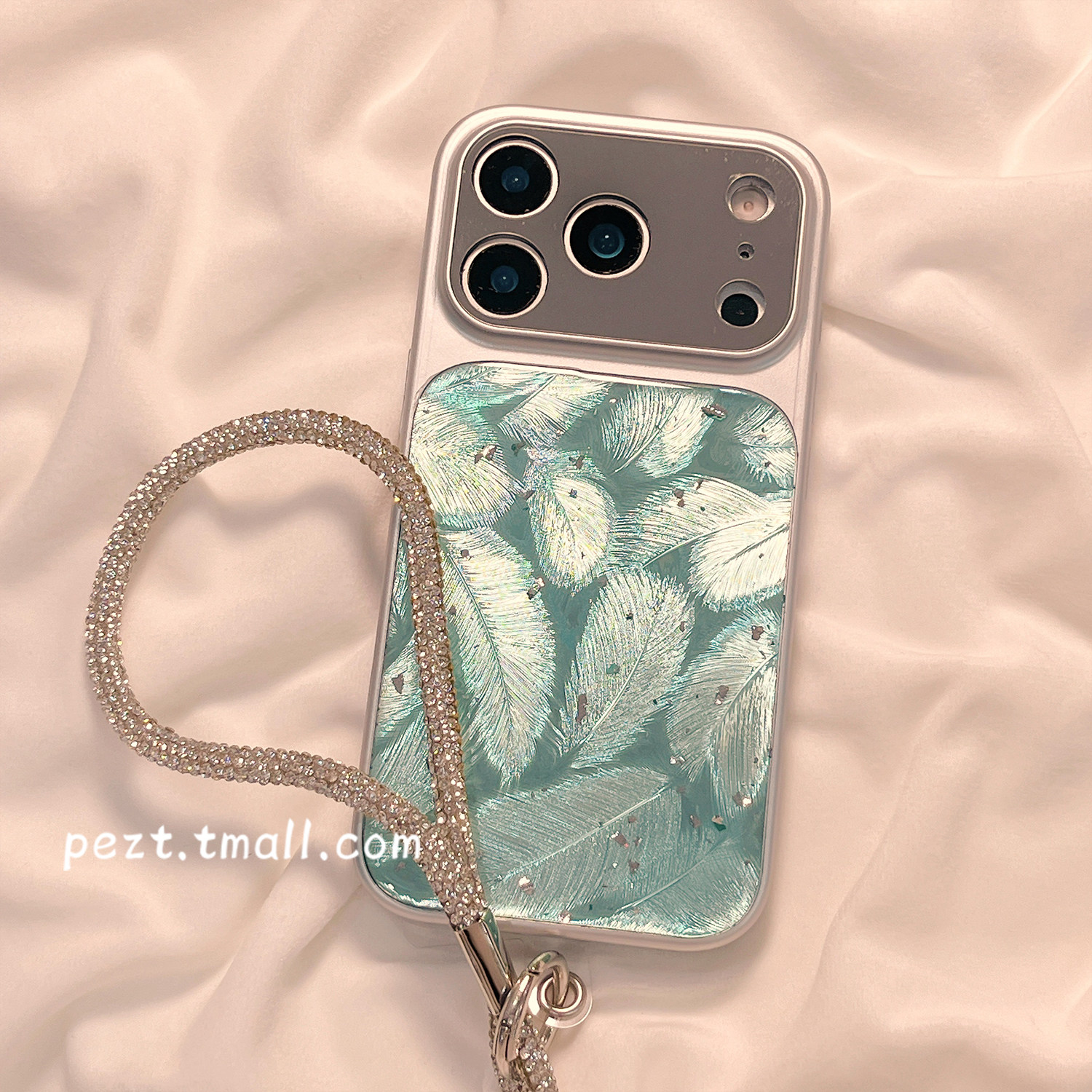 日韩ins风个性羽毛适用苹果17手机壳滴胶iphone16promax带挂绳17promax新款防摔15Pro轻奢女14保护套16全包15