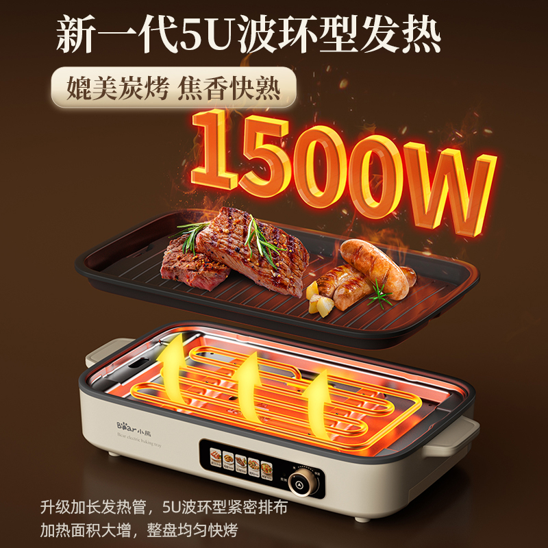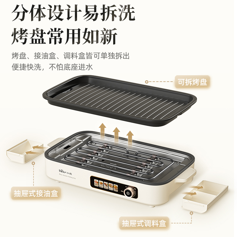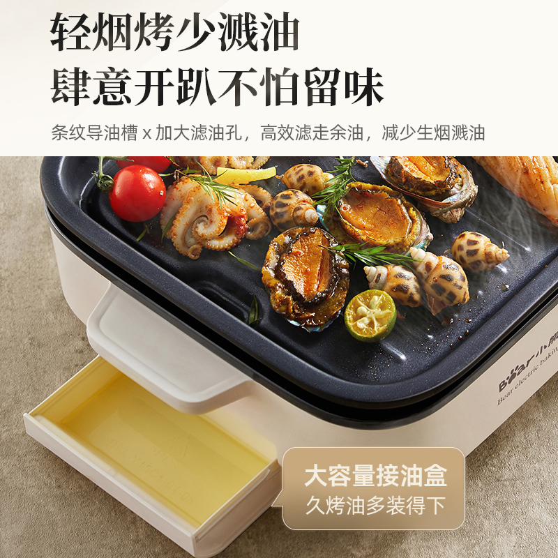 小熊烤肉锅家用烤肉炉烤鱼一体室内轻烟烧烤炉可拆洗户外电烤盘xx