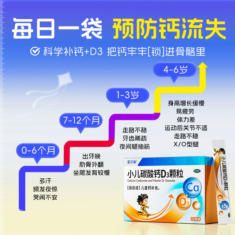 【自营】【星艾迪】小儿碳酸钙D3颗粒0.75g100IU*22袋/盒