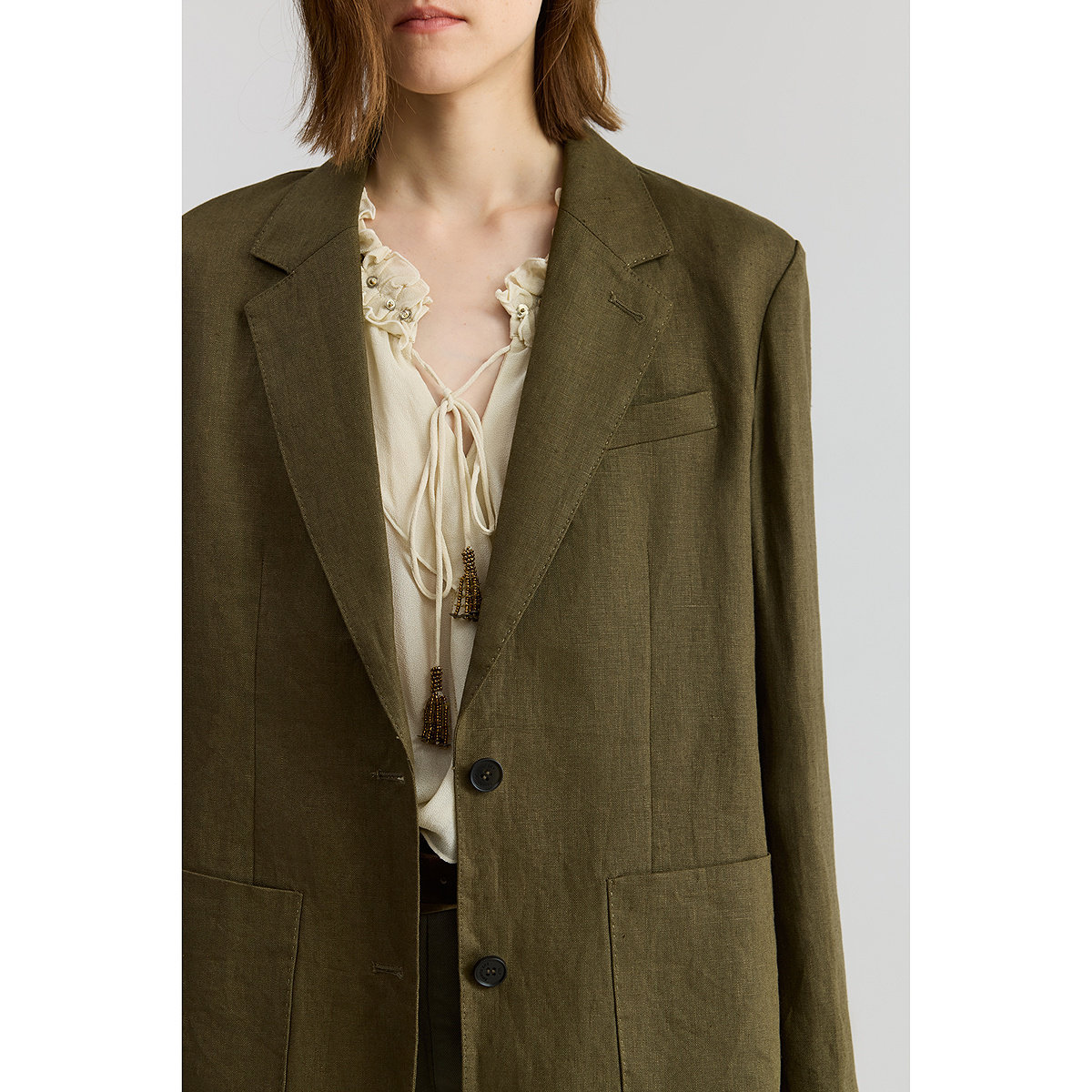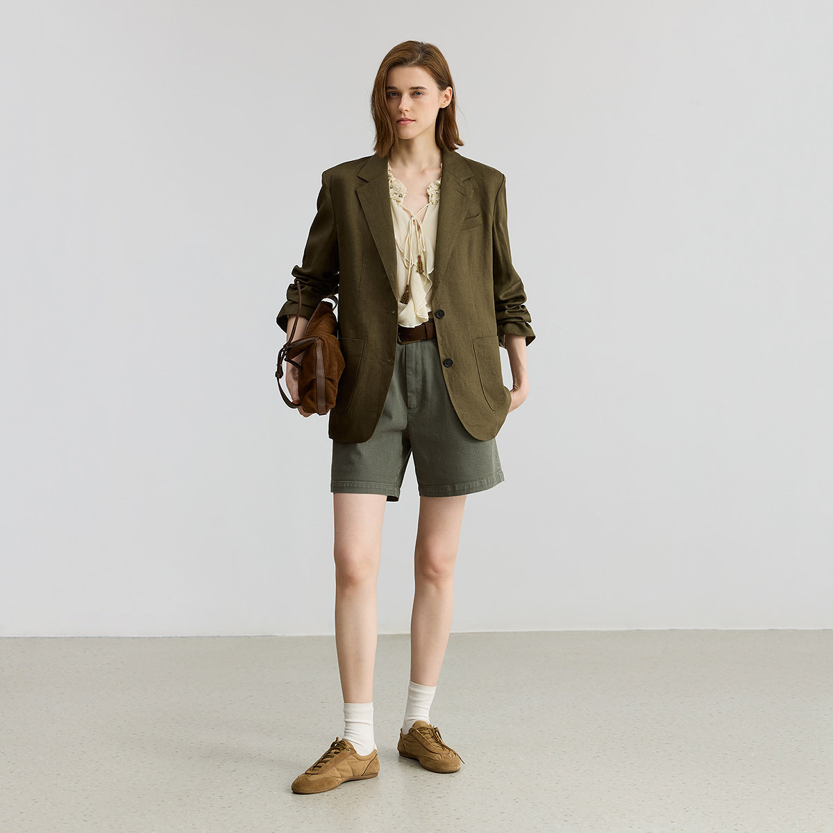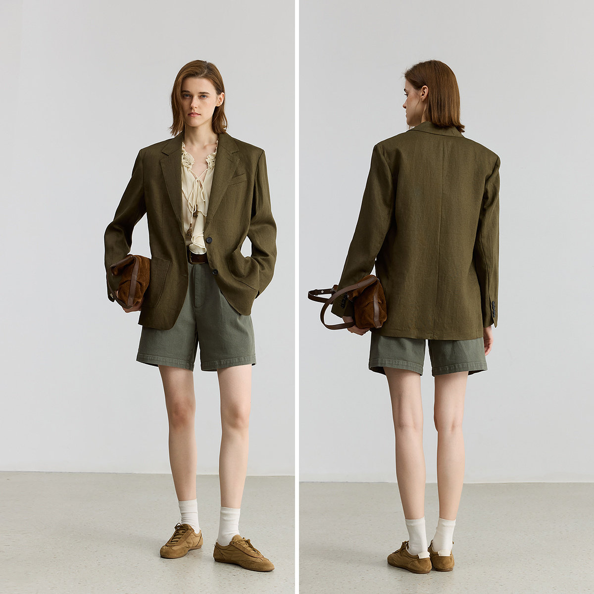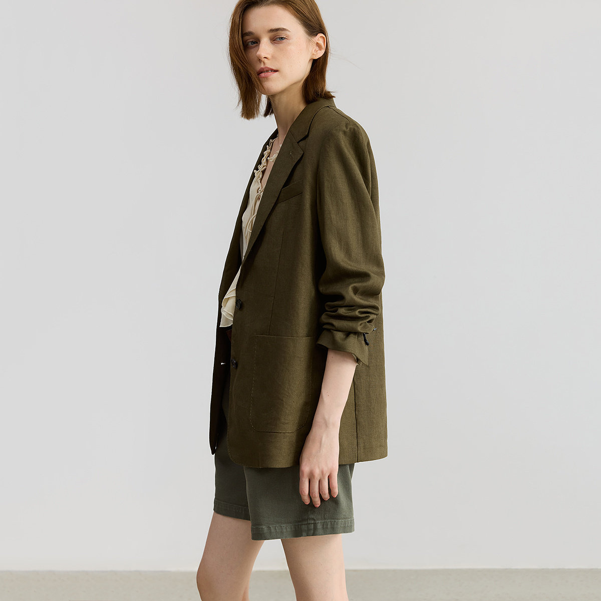 【100%亚麻】商场同款LILY2025新款女装复古老钱风驳领西装外套