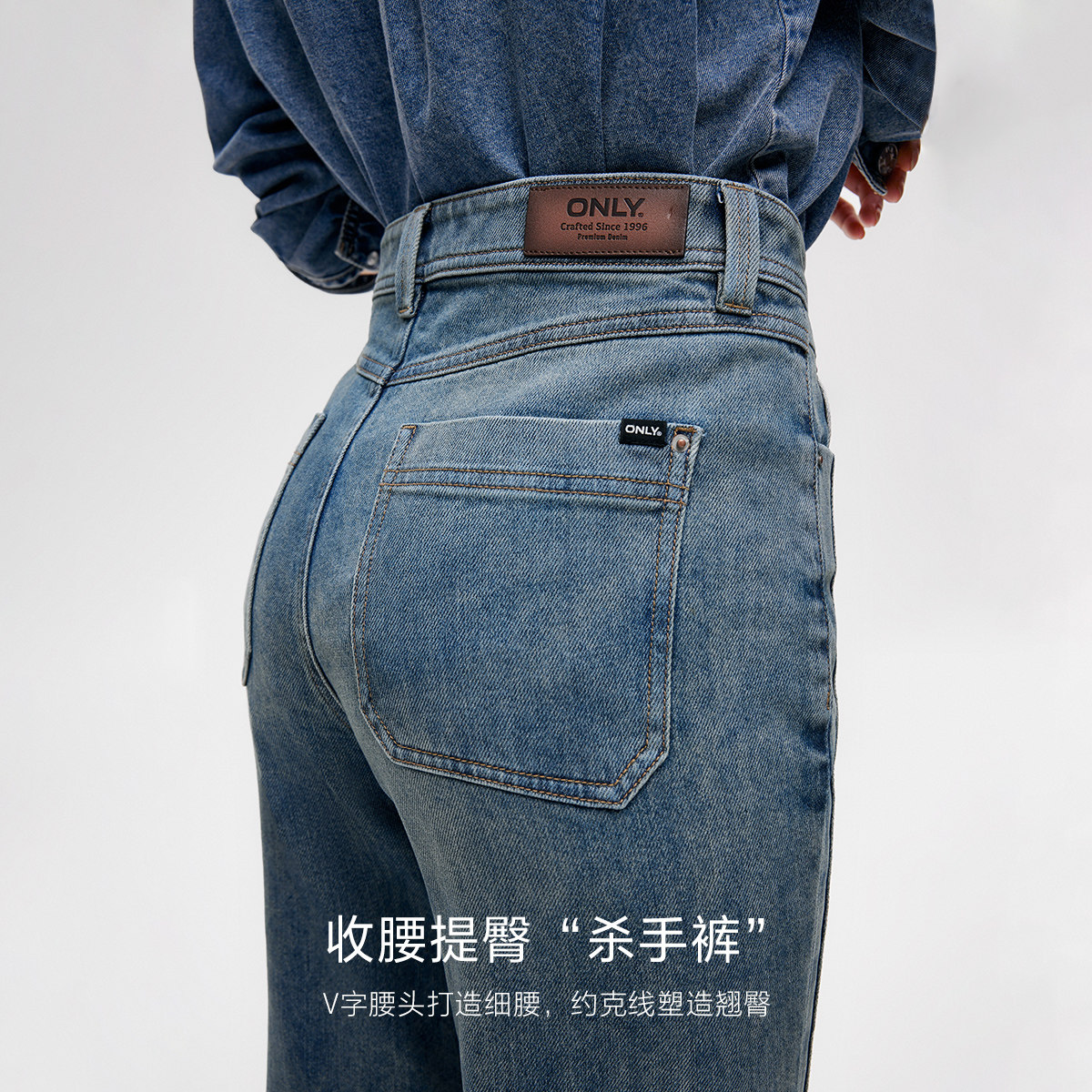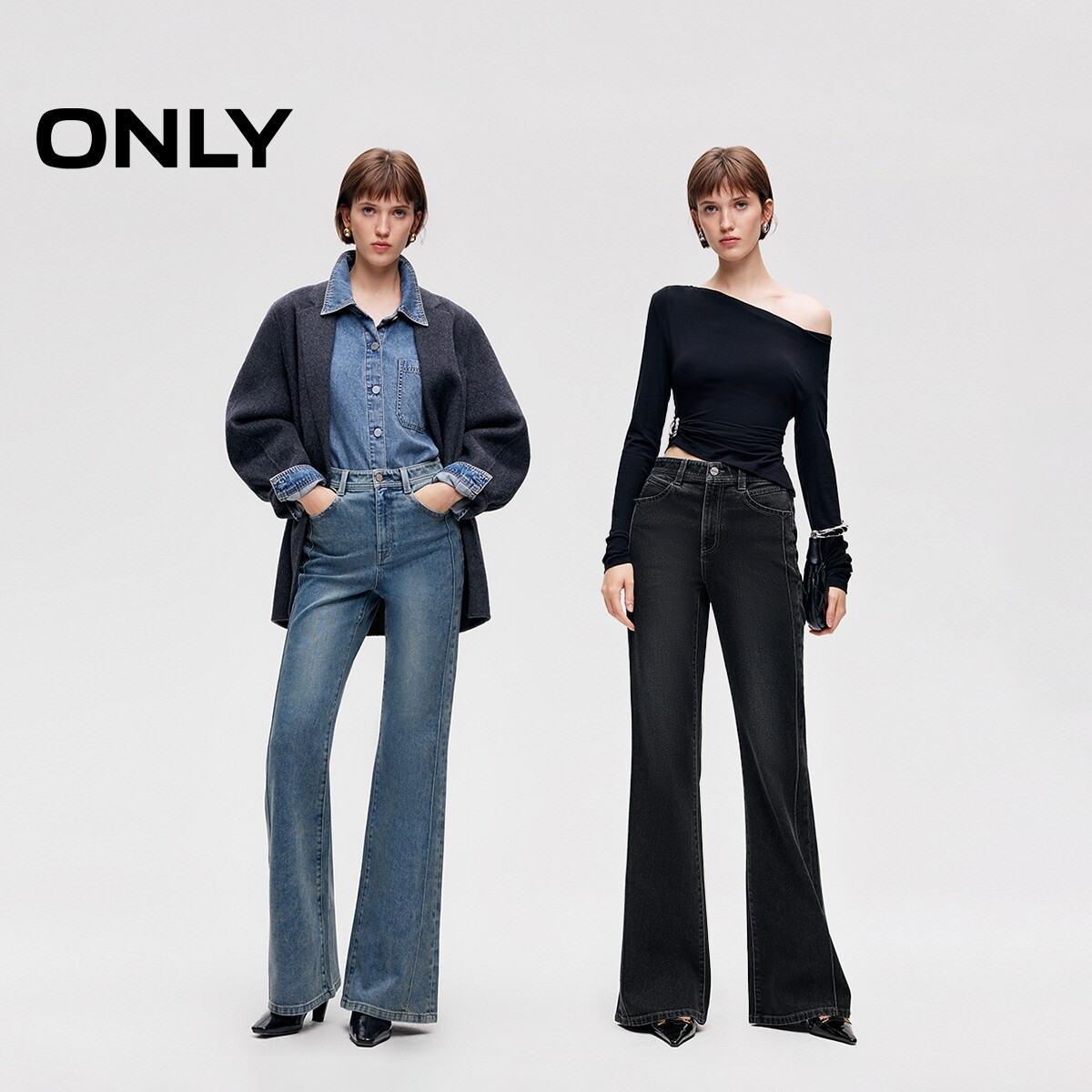 ONLY2026春季新款高腰显瘦复古做旧水洗设计修身喇叭超模牛仔裤女