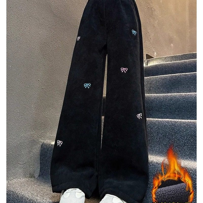 新款裤子加绒新款秋冬冬款女童加厚中大童冬季宽松阔腿裤百搭儿童