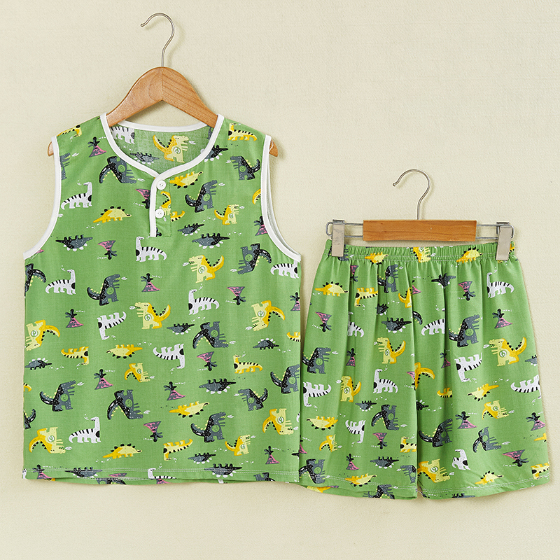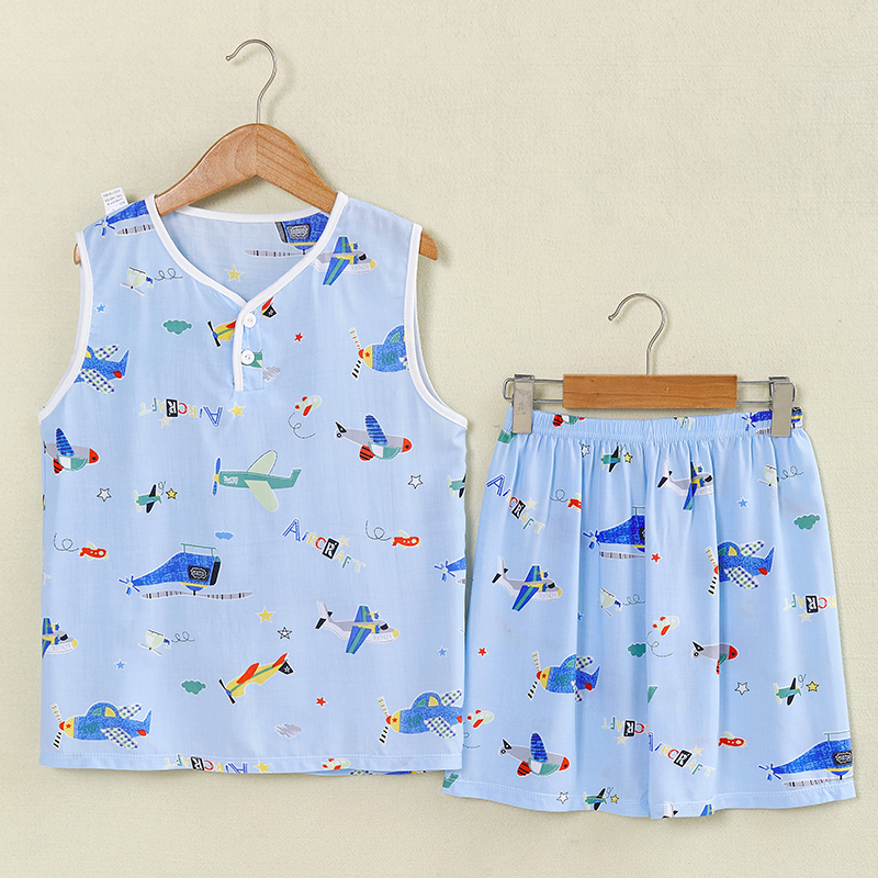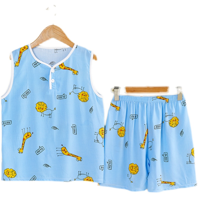 夏季儿童棉绸无袖背心短裤套装男童女童宝宝薄款睡衣家居服空调服