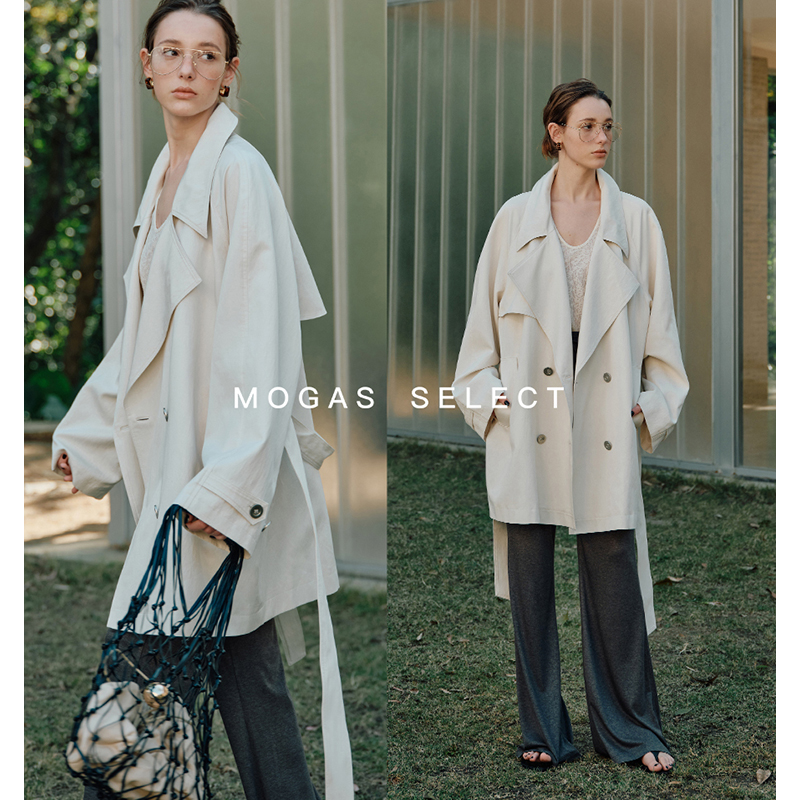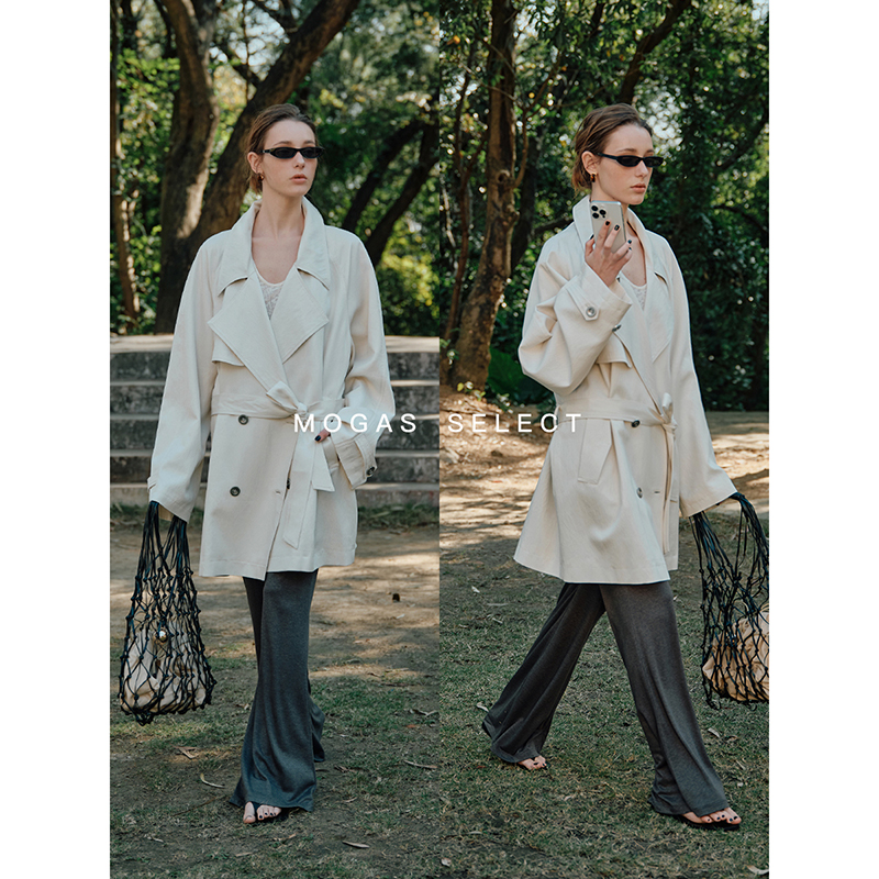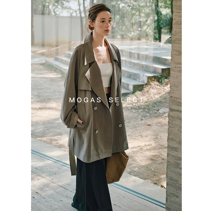 Mogas时髦Chic 重磅莱赛尔奢牌质感Row风系带风衣中长款外套女春