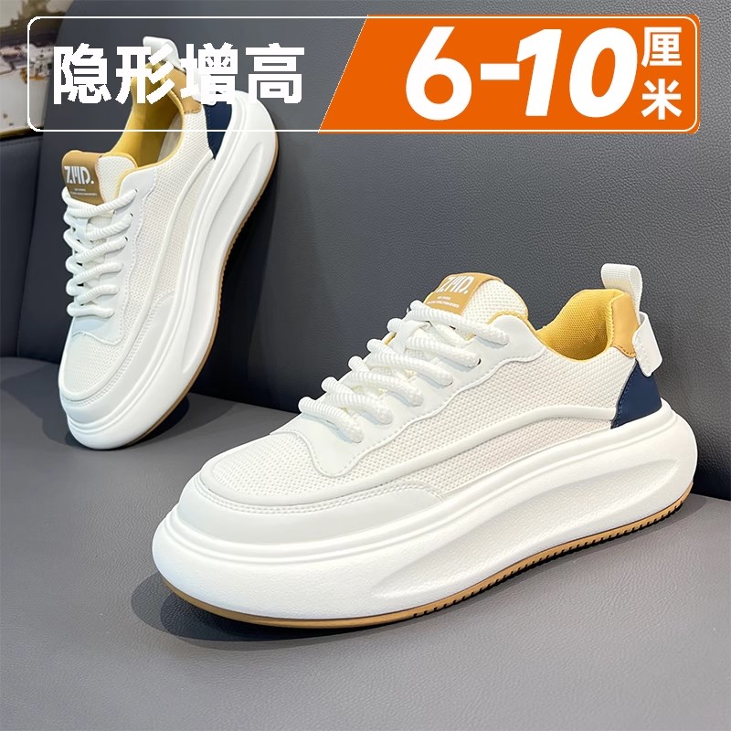 男鞋夏季透气2025新款运动休闲板鞋厚底隐形内增高百搭网面小白鞋