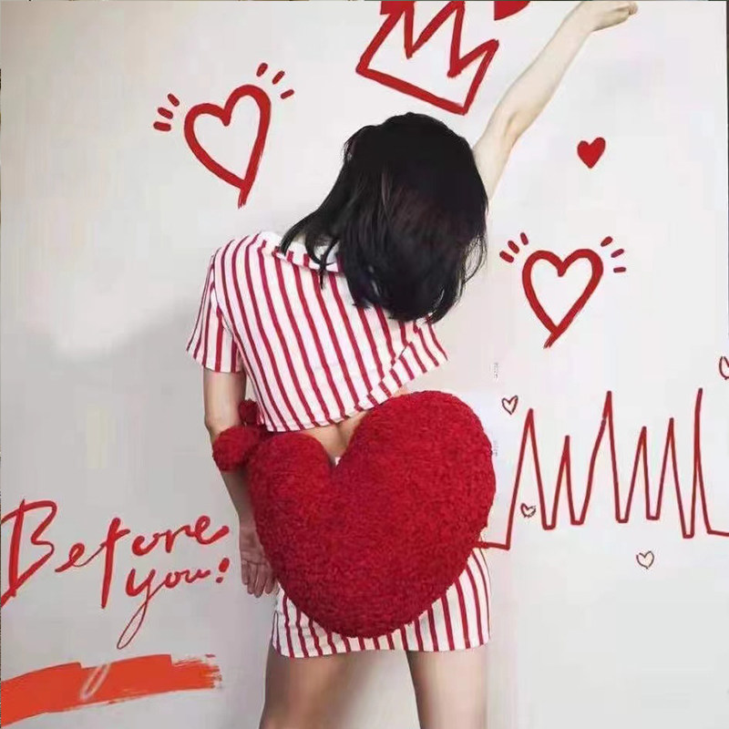 ins网红色可爱心型抱枕沙发床头毛绒摆件活动情侣女朋友生日礼物