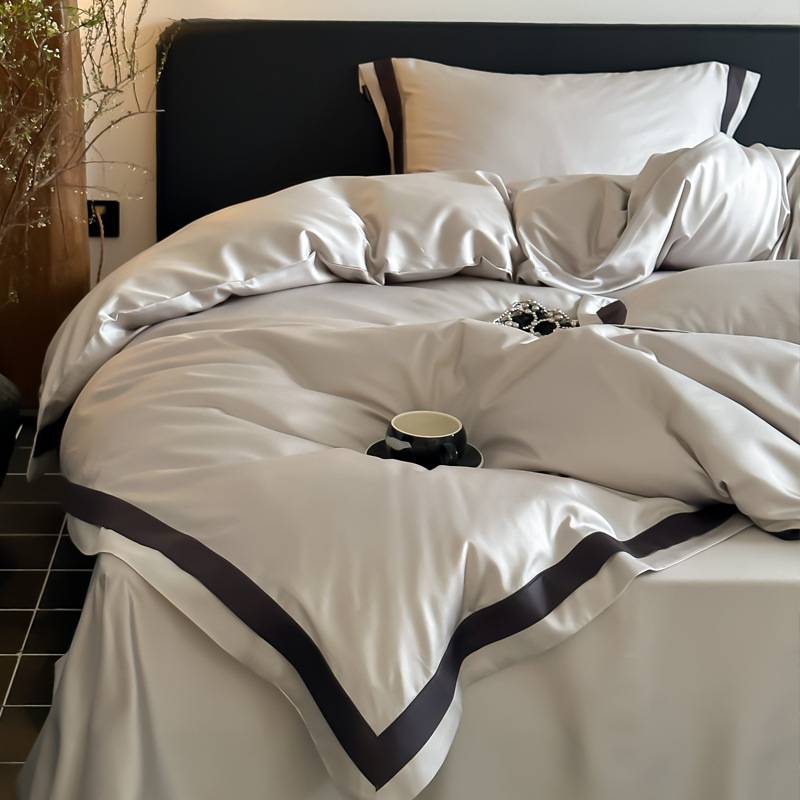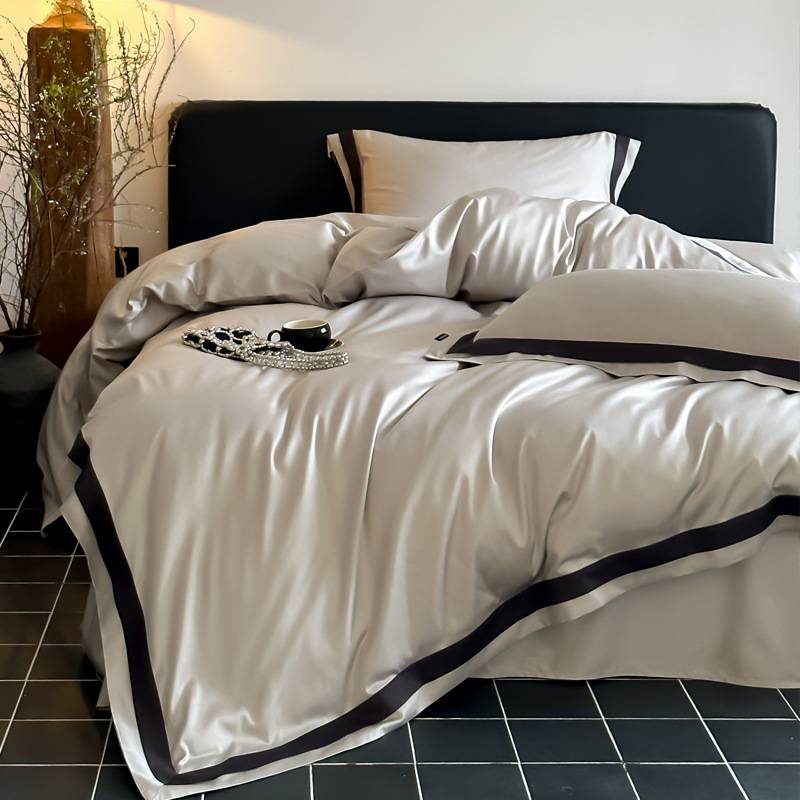 轻奢风纯色100S天丝棉四件套磨毛加厚被套全棉裸睡床单笠床上用品