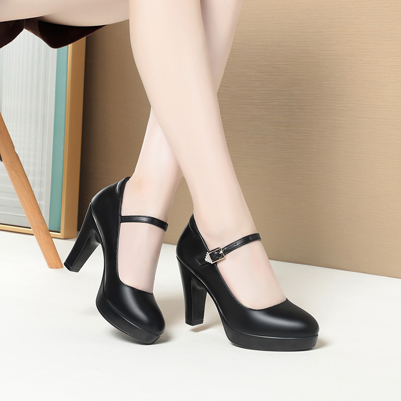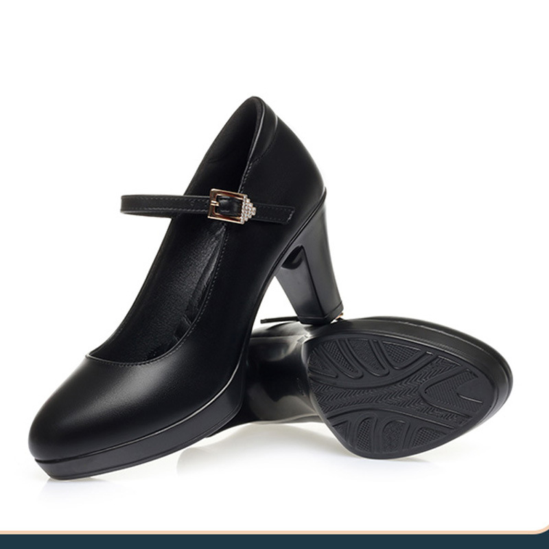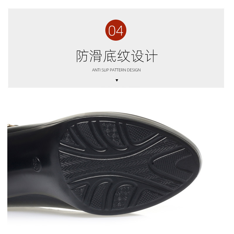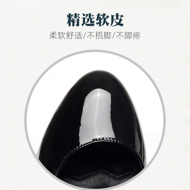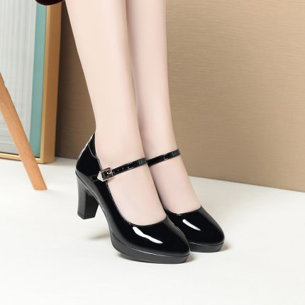 久站不累春秋女士皮鞋旗袍走秀高跟鞋漆皮粗跟防水台软皮职业单鞋
