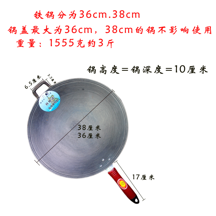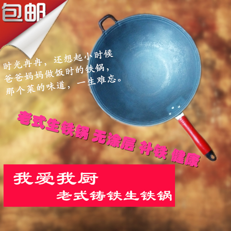 捞刀河关二哥老式铸铁生铁锅炒锅圆底无涂层家用电磁炉燃气不粘锅