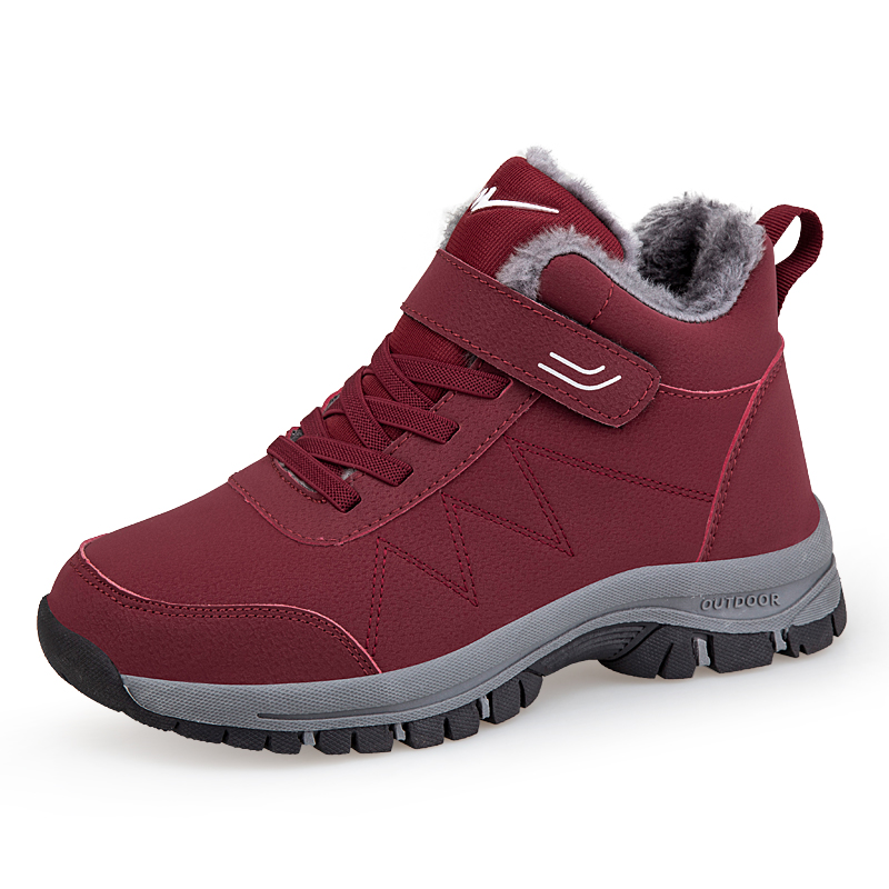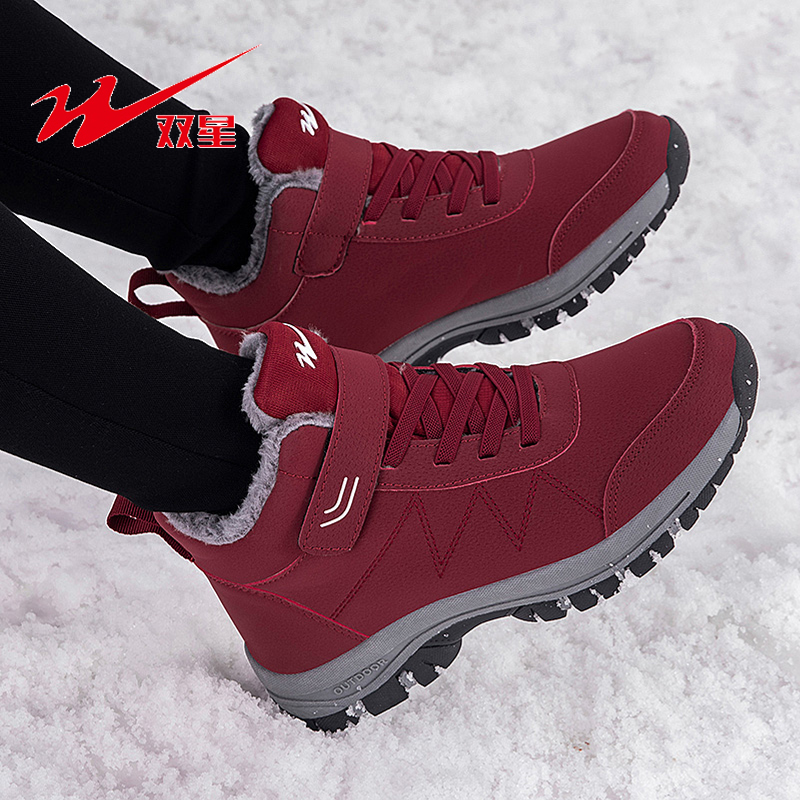 双星女鞋冬季皮面棉鞋女加绒保暖运动鞋子女防水防滑中老年雪地靴