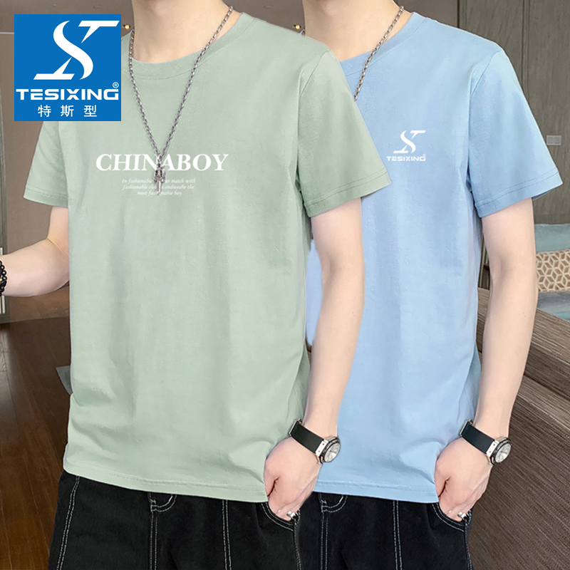 以纯YISHION短袖t恤男士夏季薄款宽松圆领纯棉打底衫青少年ins印